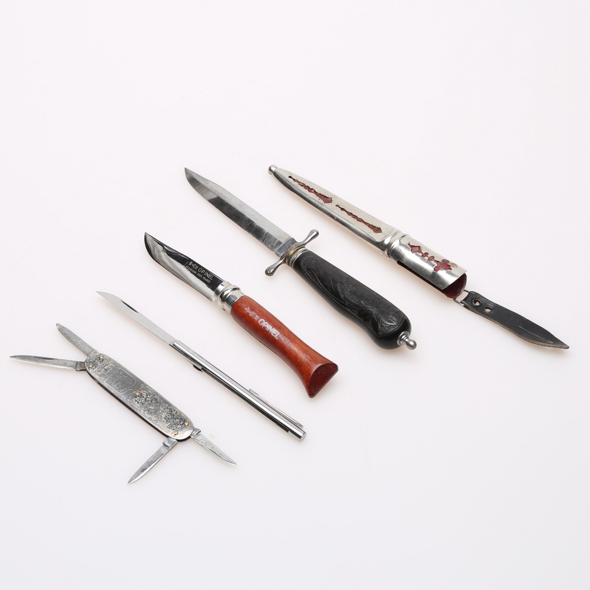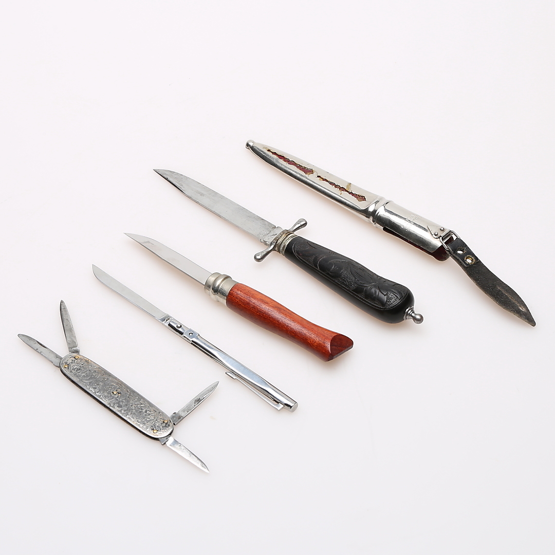 680876. KNIVES, 4 pcs. JA Hellberg, Eskilstuna, EKA, Opinel and IAN.