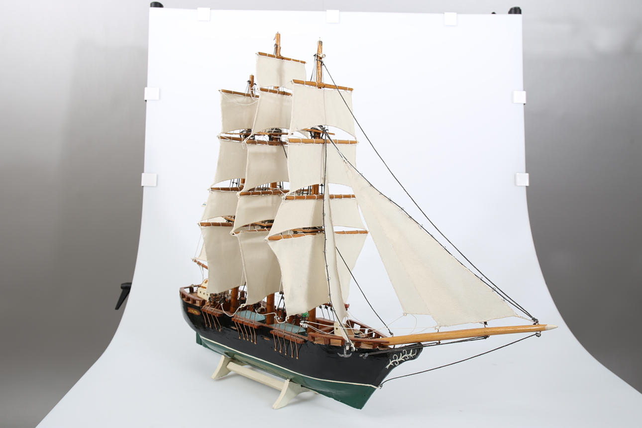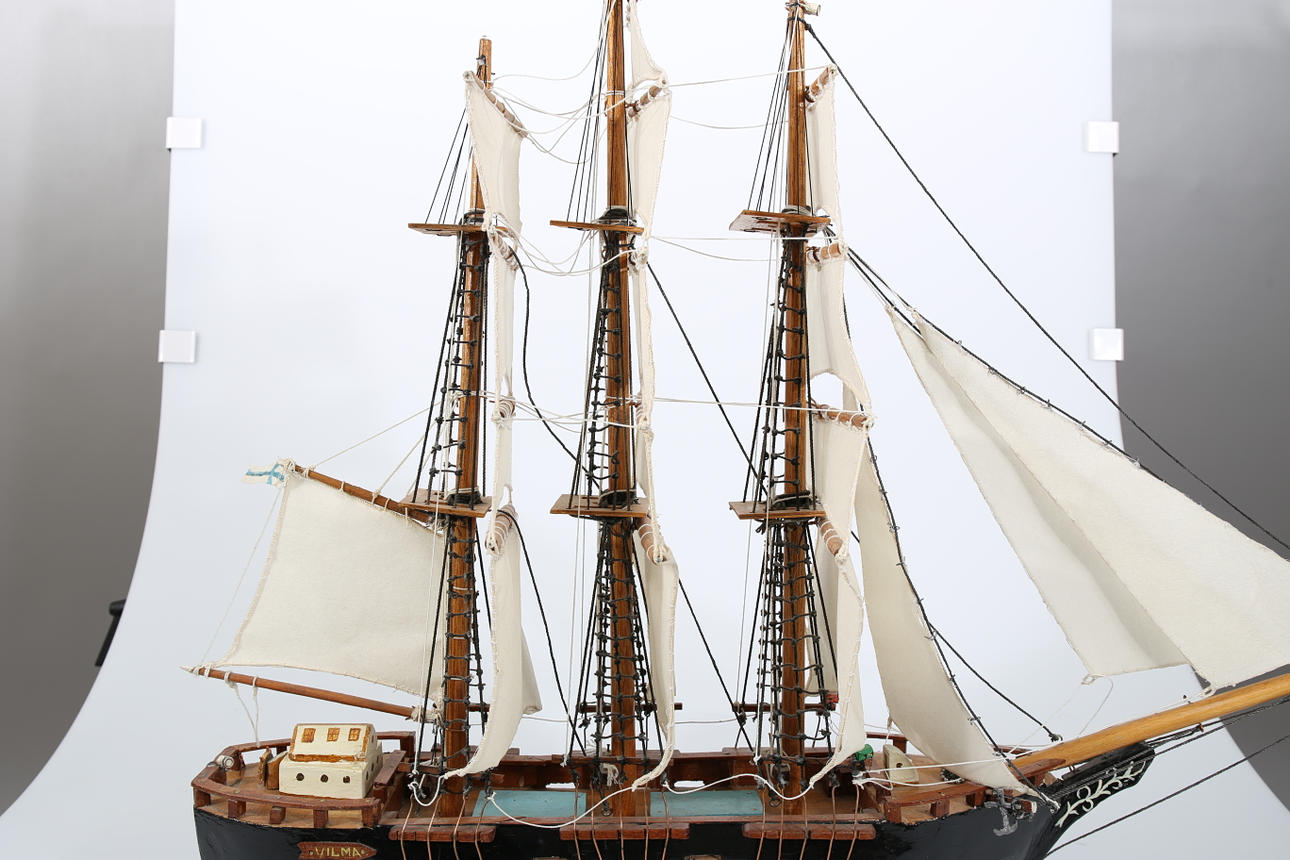 681457. MODEL SHIP, three-masted sailboat, Wilma, handmade, 1900s.