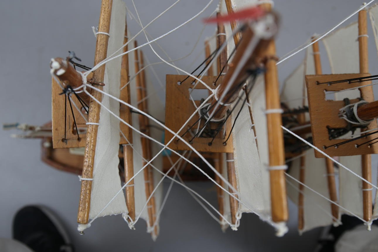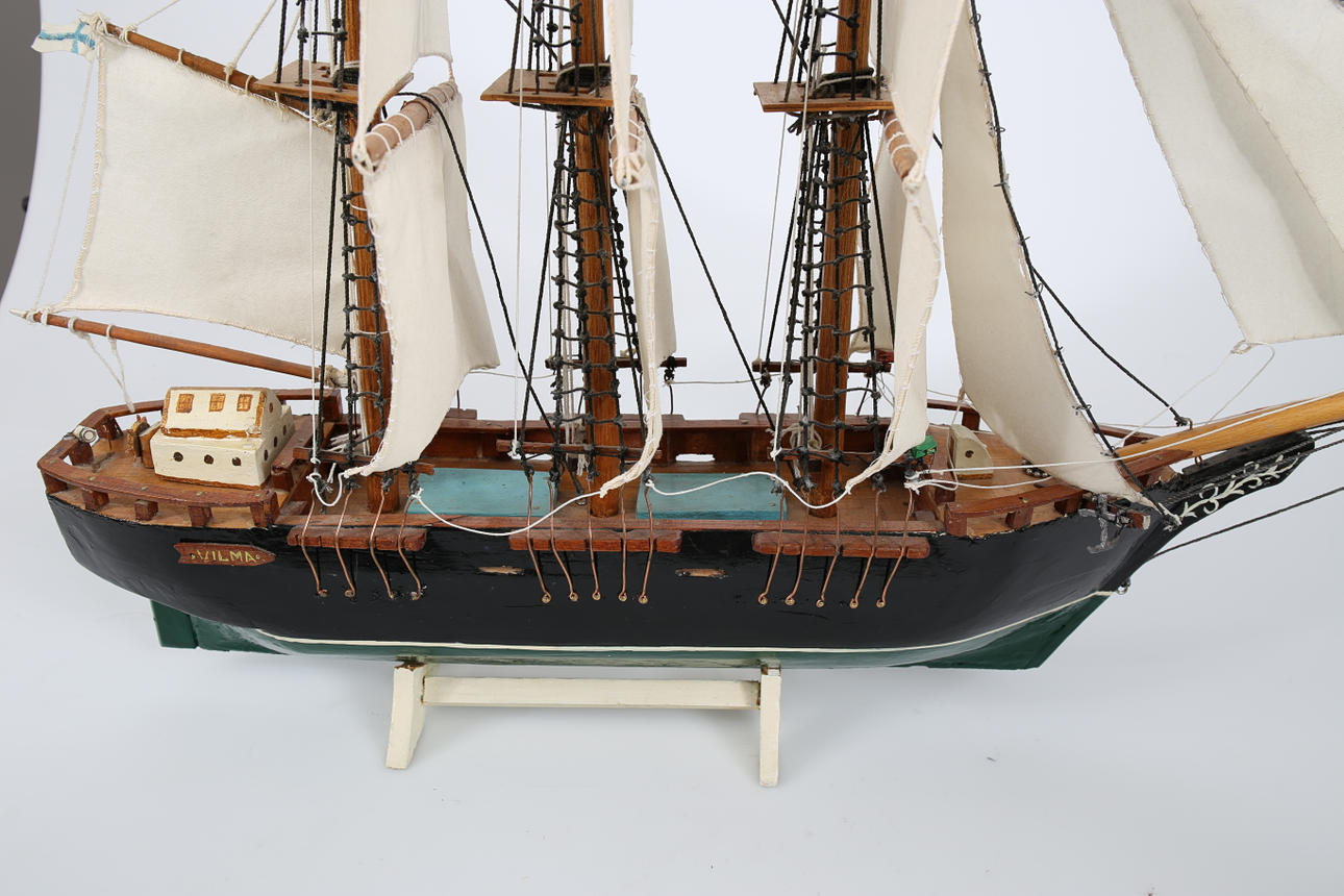 MODEL SHIP, three-masted sailboat, Wilma, handmade, 1900s.