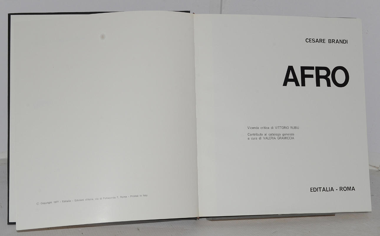 Editalia, Roma (1977) cm 30x33 pag. 226 ill. 57 tav col, 389 b/n Vicenda critica di Vittorio Rubiu con contributo al catalogo generale a cura di Valeria Gramiccia. Con cofanetto rigido illustrato Italiano. Italian text.