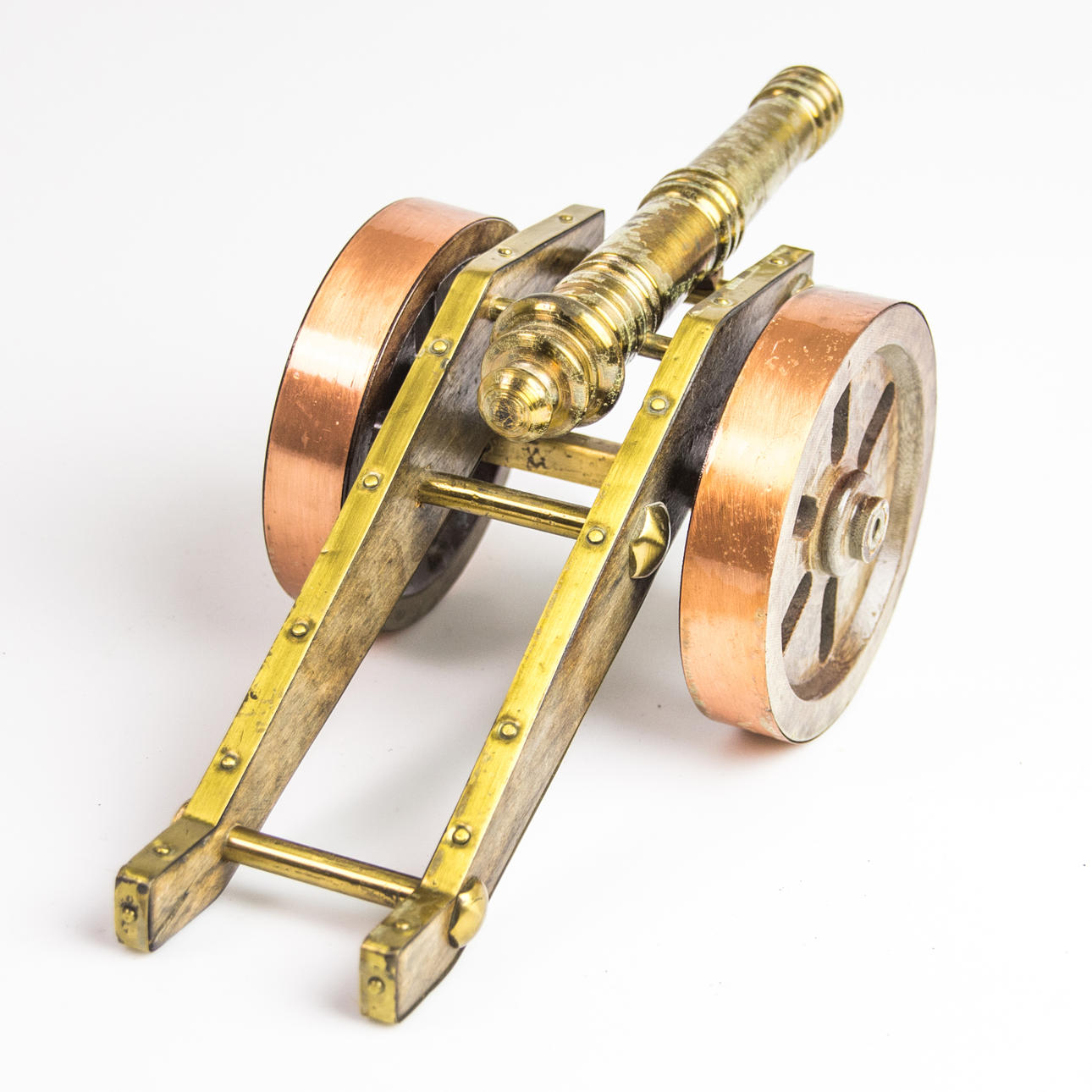 TABLE CANNON, brass with wooden lavette.