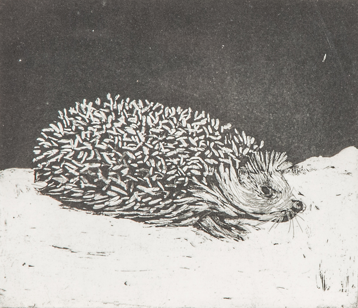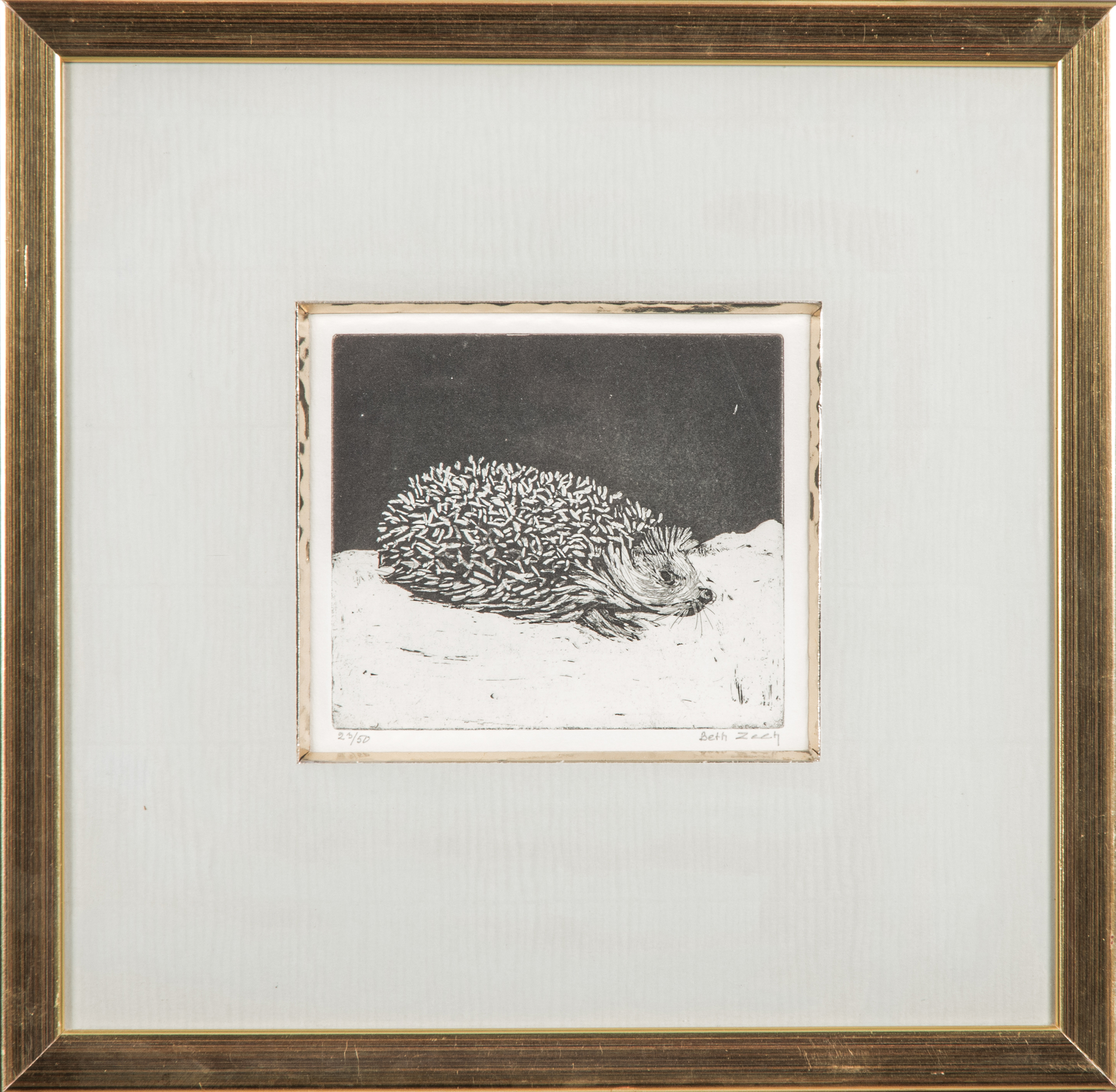693473. BETH ZACH. Hedgehog, etching, signed.