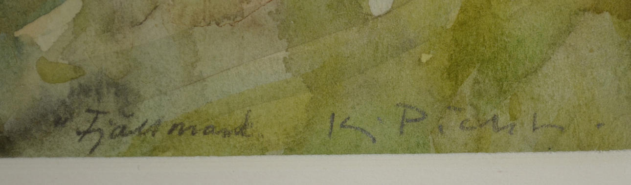 KAJ Gustaf-Adolf Olofsson PIEHL Visual artist, draftsman, born 1921 in Ardre, Gotland county, died 2000. He studied at Lena Börjeson's sculpture school, Signe Barth's painting school, and with Otte Sköld and Isaac Grünewald. He made study trips in Southern Europe and North Africa. He painted abstract nature-inspired expressionism with fresh and varied color.