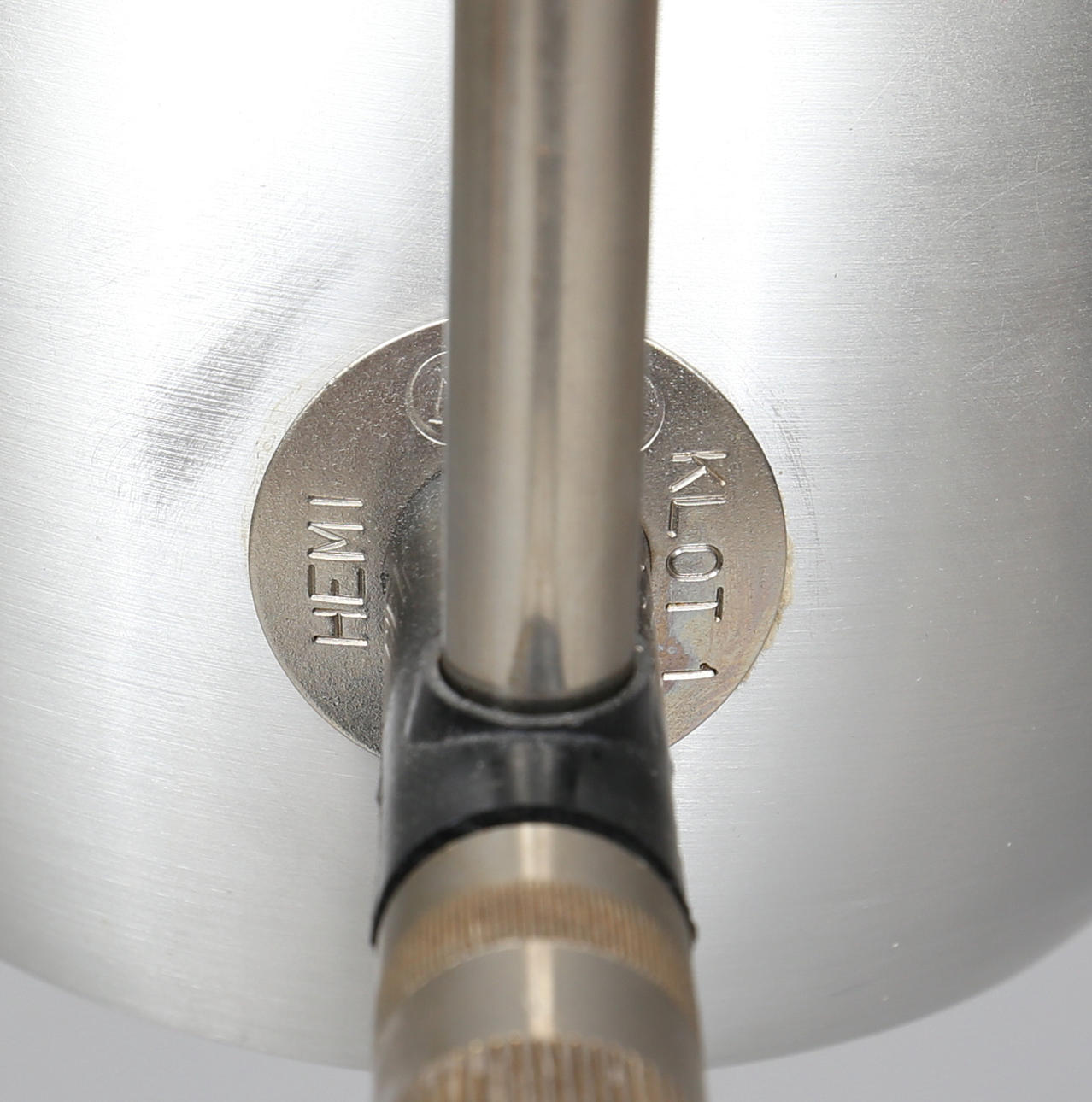 Metal. An adjustable light point. The height of the shaft approx. 130 cm.
