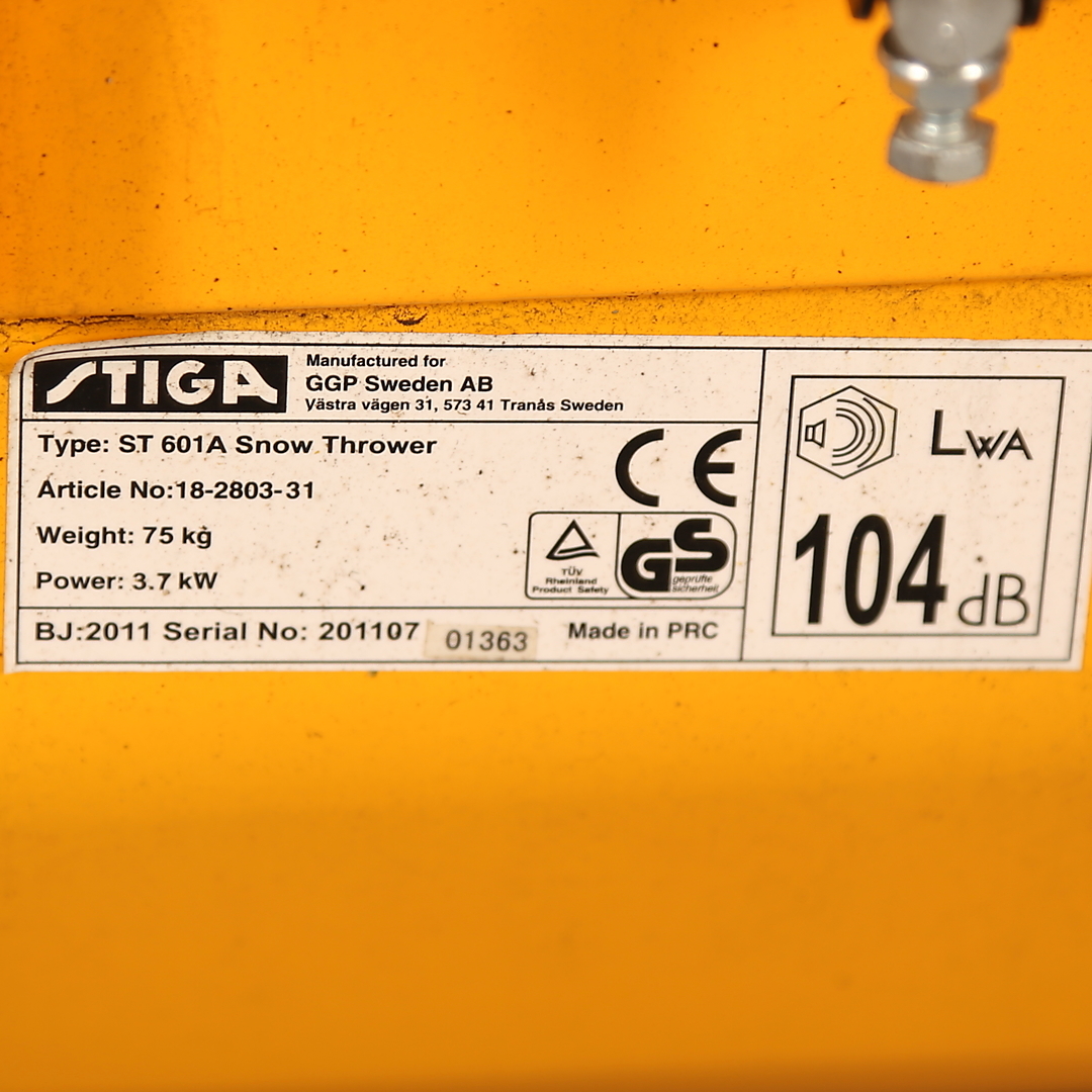 696361. SNOW THROWER, yellow, STIGA type ST 601A Snow Thrower, year 2011.