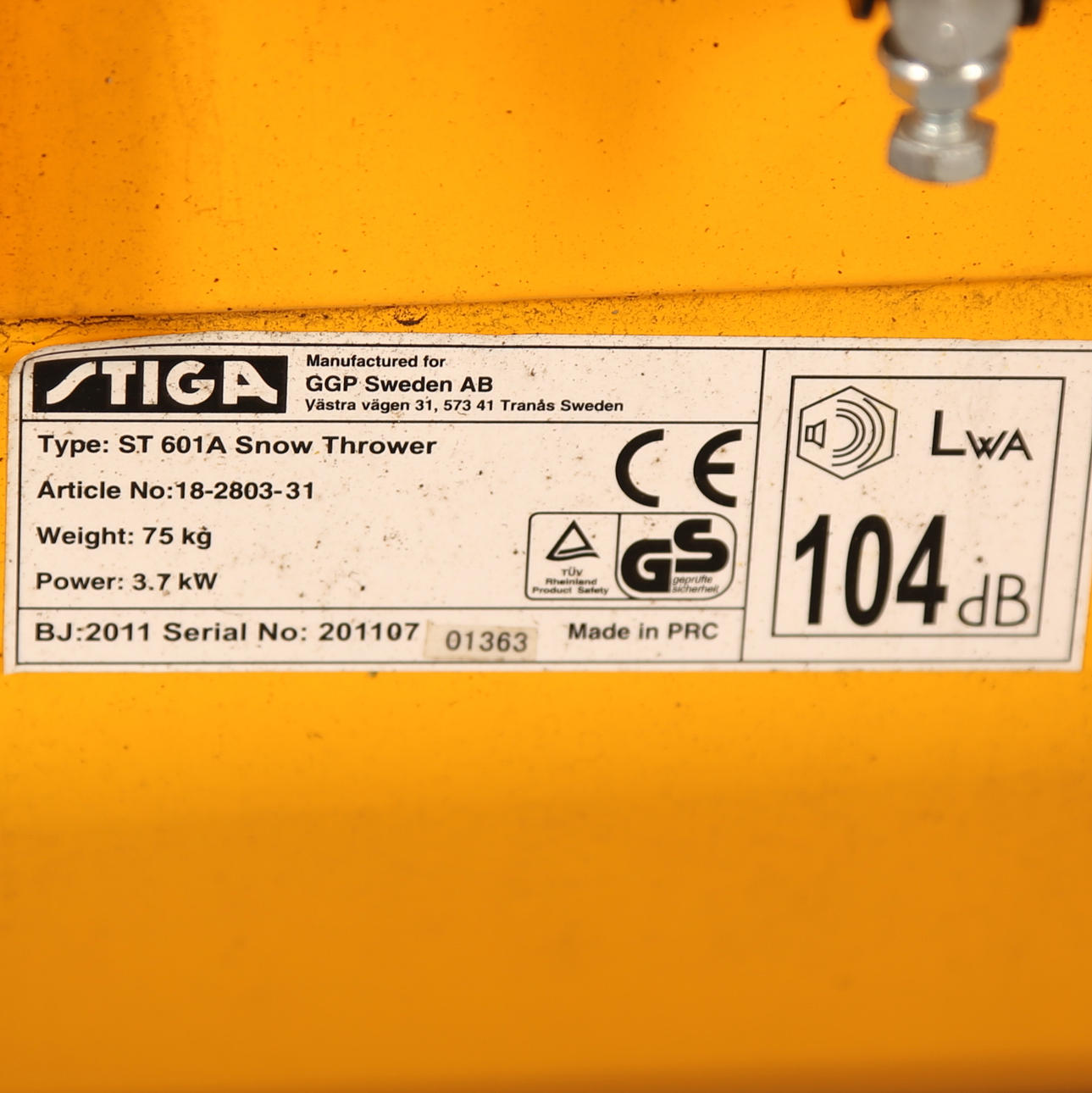 Weight 75 kg. 3.7 kW. 104 dB. Includes grease gun. Instructions for use.