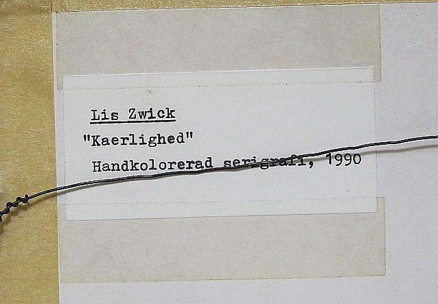 699611. LIZ SWICK. hand-colored serigraphy "Kaerlighed" signed, dated 1990.
