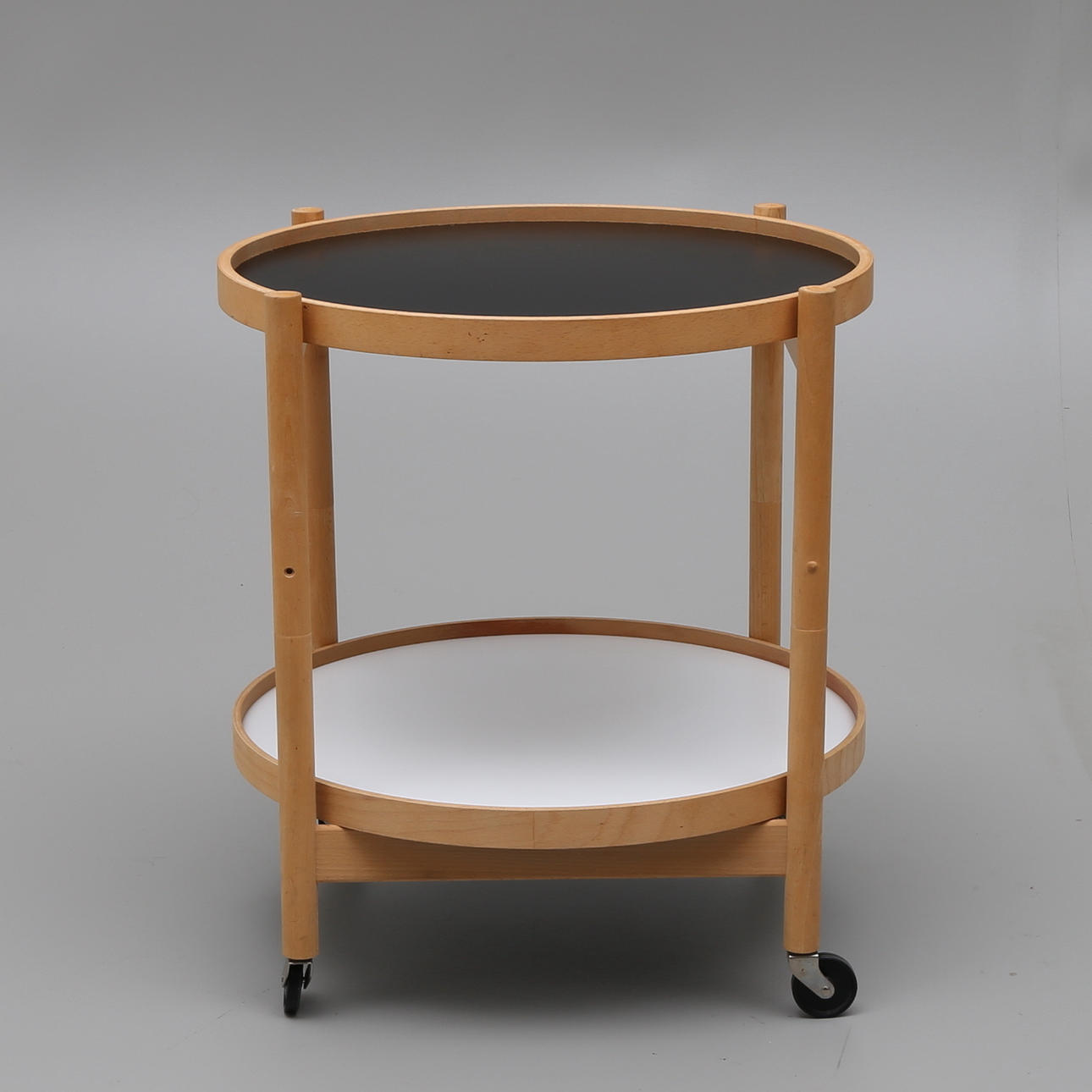 frame of beech wood, two removable trays in two colors each, height 56 cm, tray diameter 50 cm.