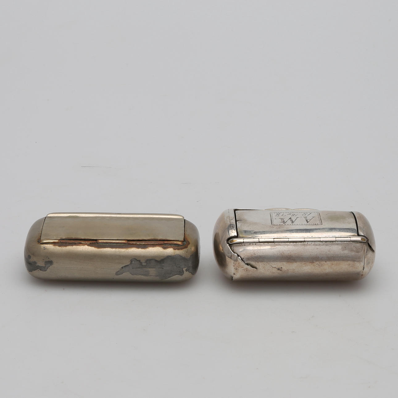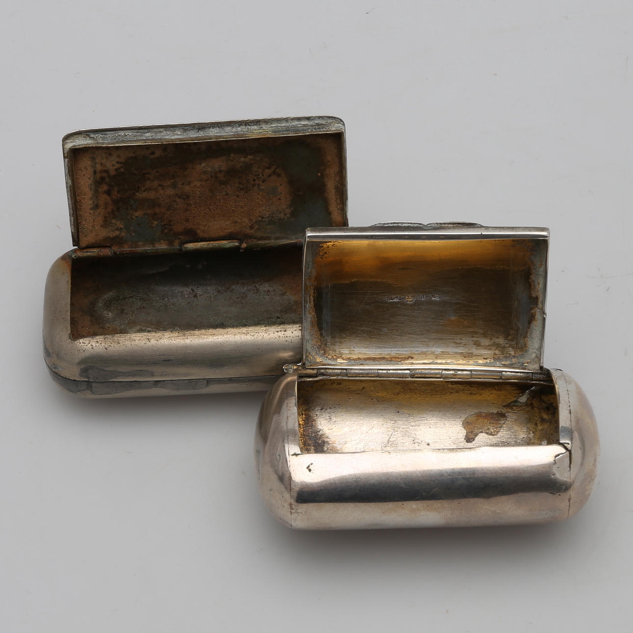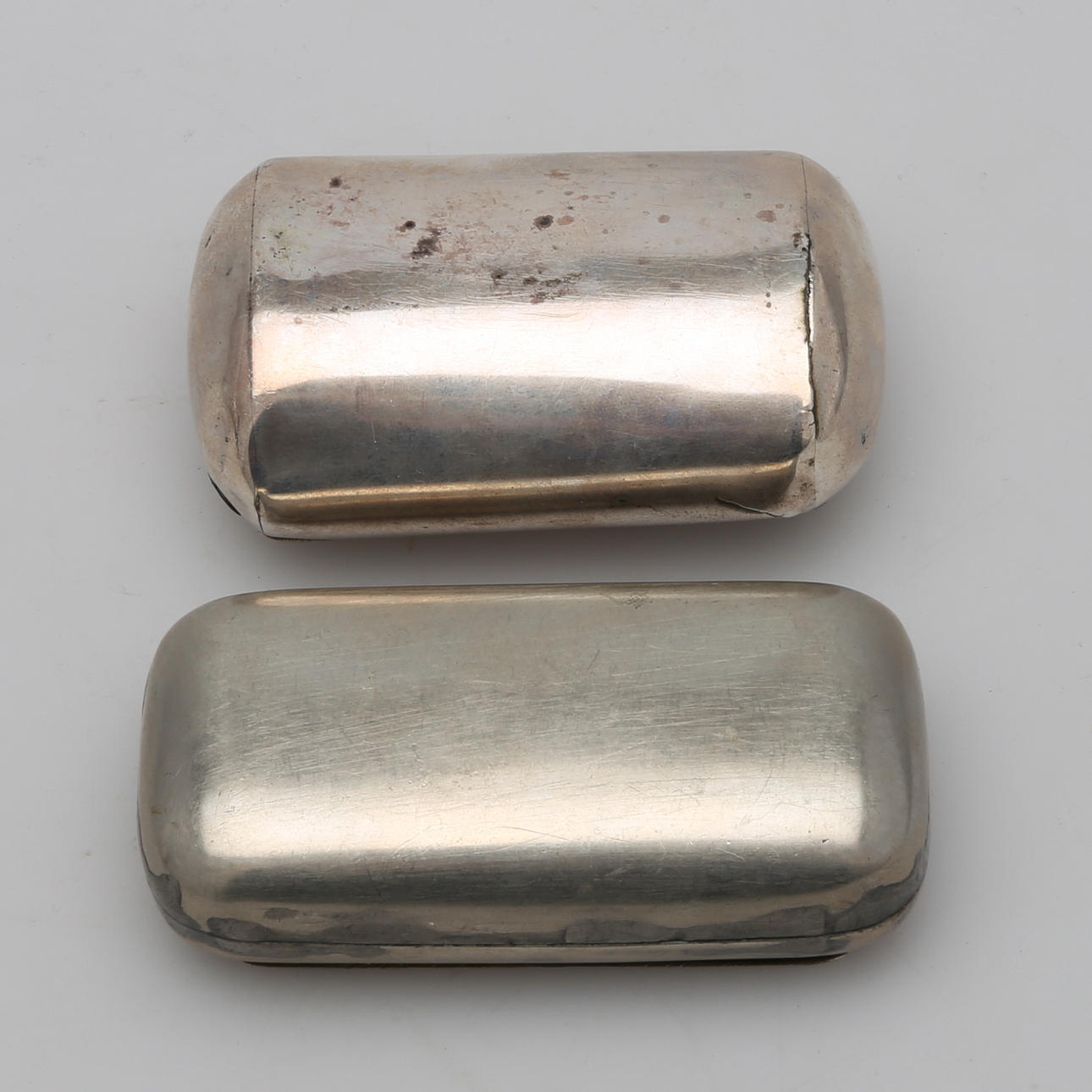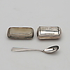 703138. SNUFF BOXES, 2 PCS AND JAM SPOON, silver and nickel silver.