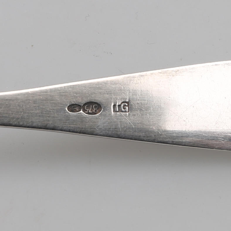 The silver box with owner engraving, the marmalade spoon in silver. stamped TG, Estonia.