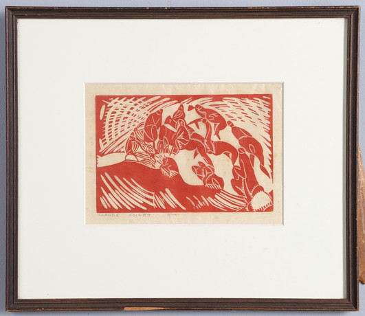 ACKE ÅSLUND. Wolf hunting among the Sami, drawing, ink, signed and dated 1922.