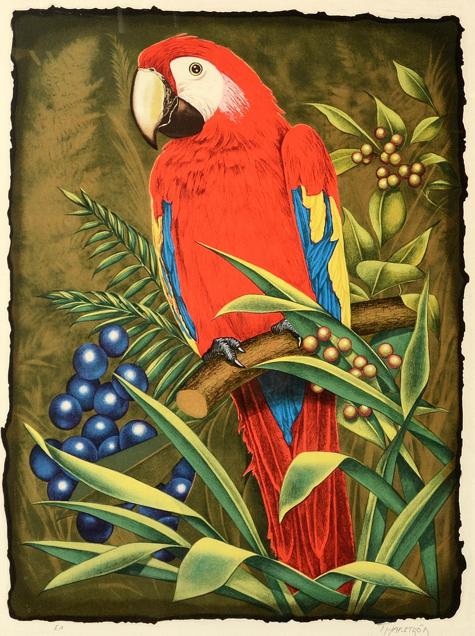 Composition with parrot, signed, epreuve d'artiste, 55x40 cm.