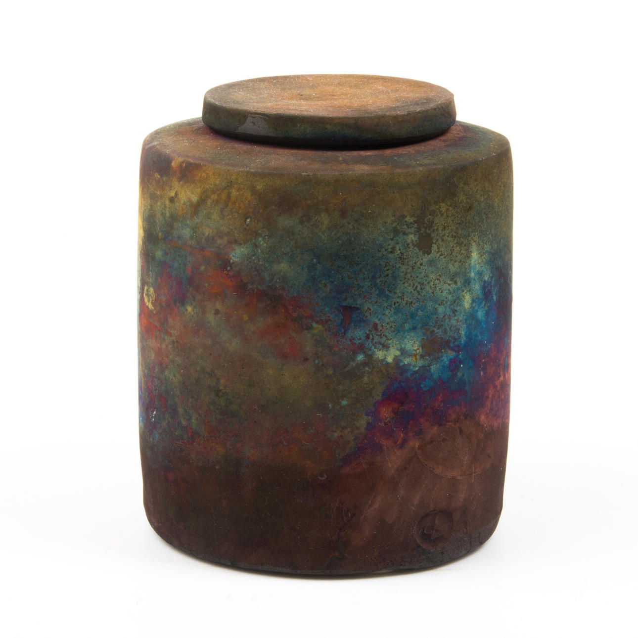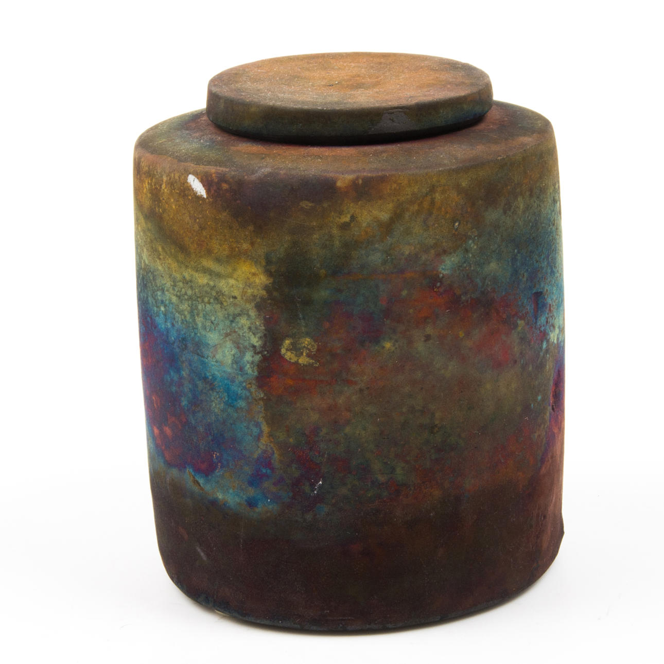 726362. DAN LEONETTE. Lock urn, raku-fired ceramic.