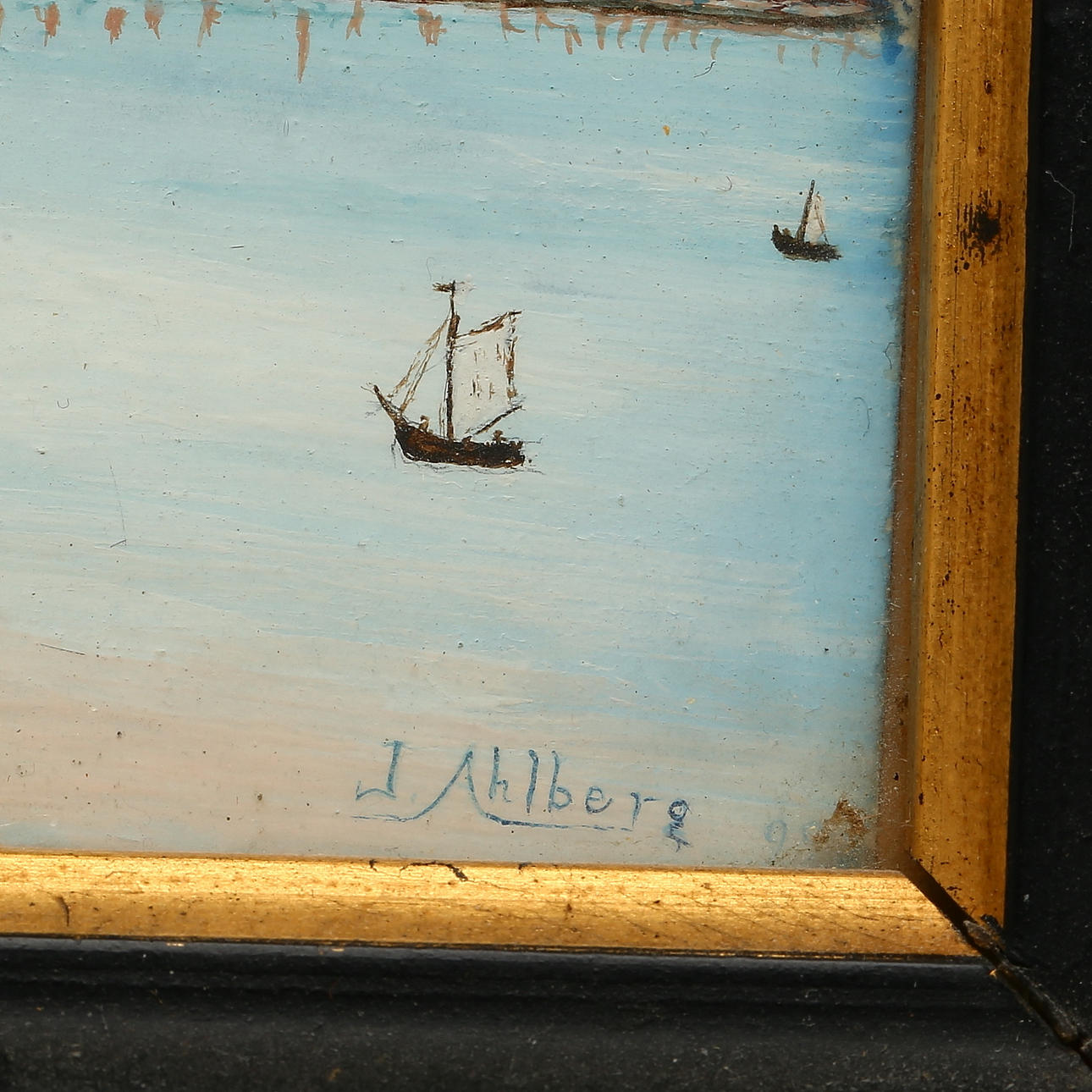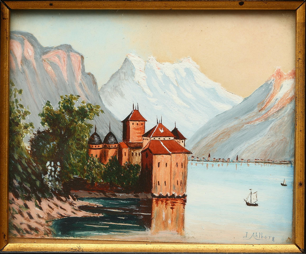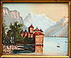 730921. JOHN AHLBERG. Château de Chillon, gouache, signed.