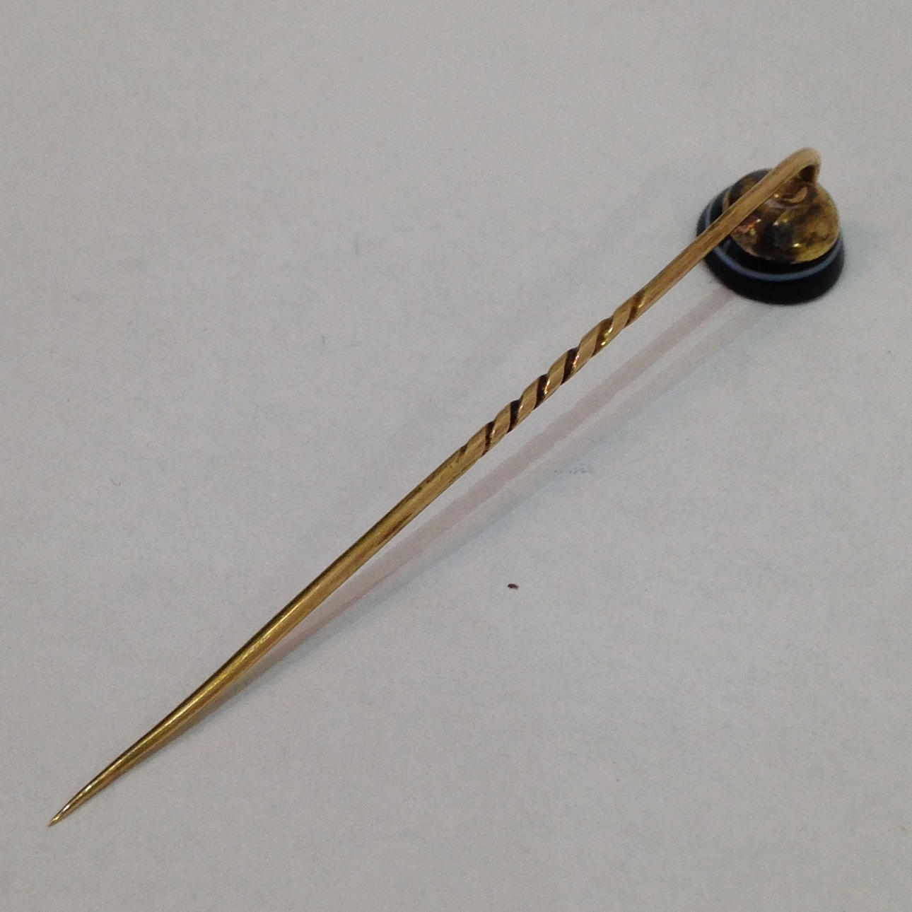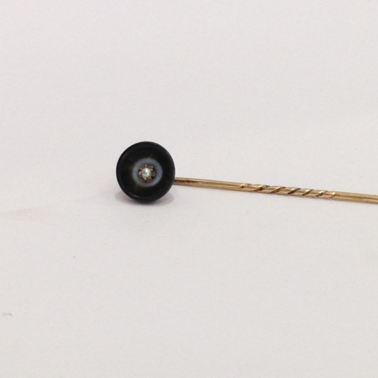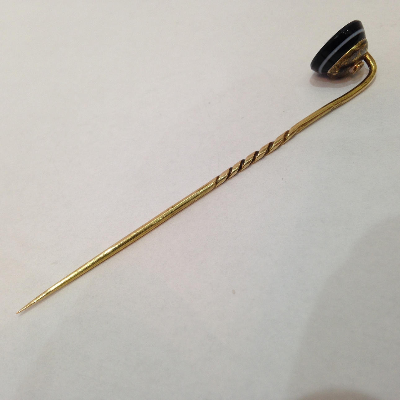 The black agate is set into a part twisted tie pin.