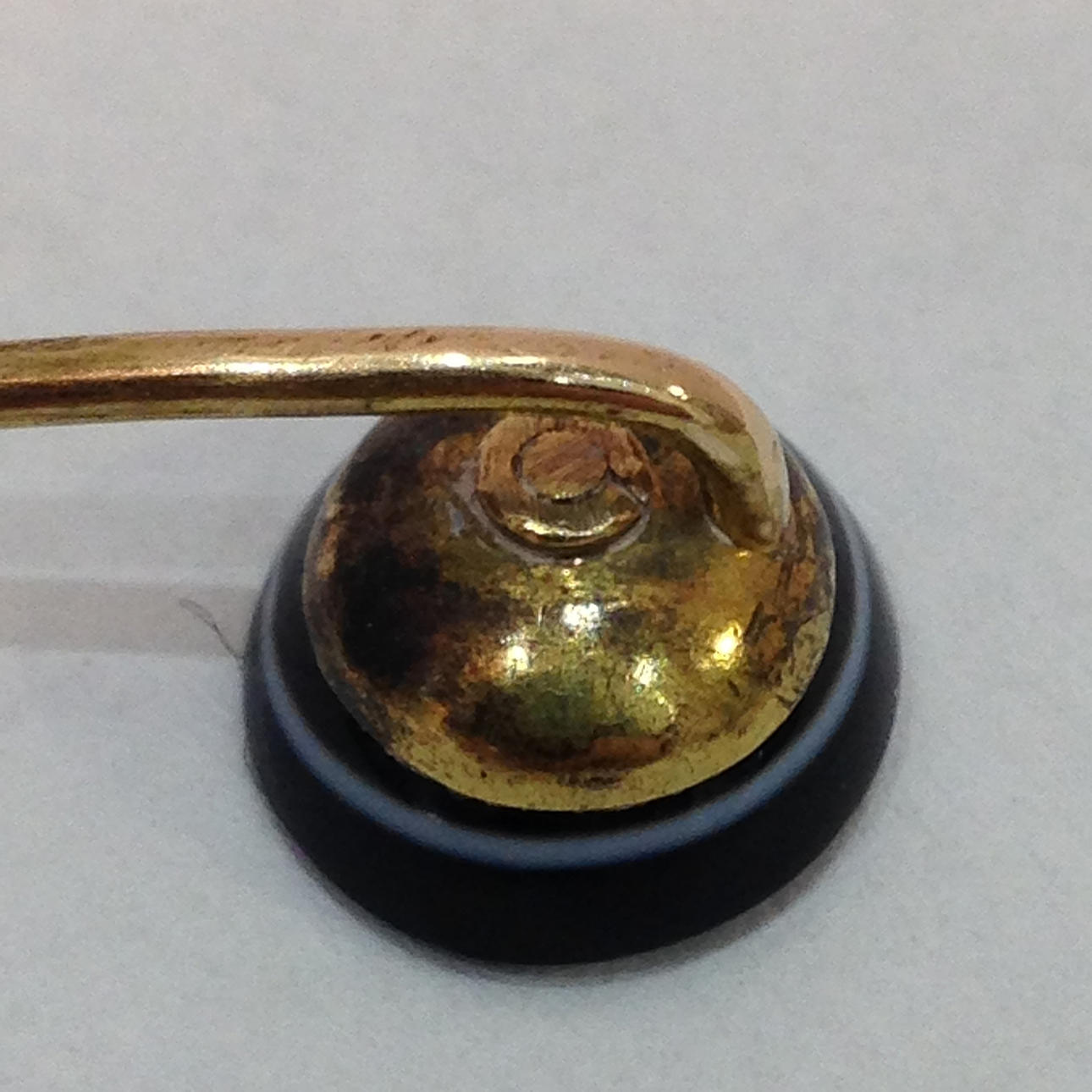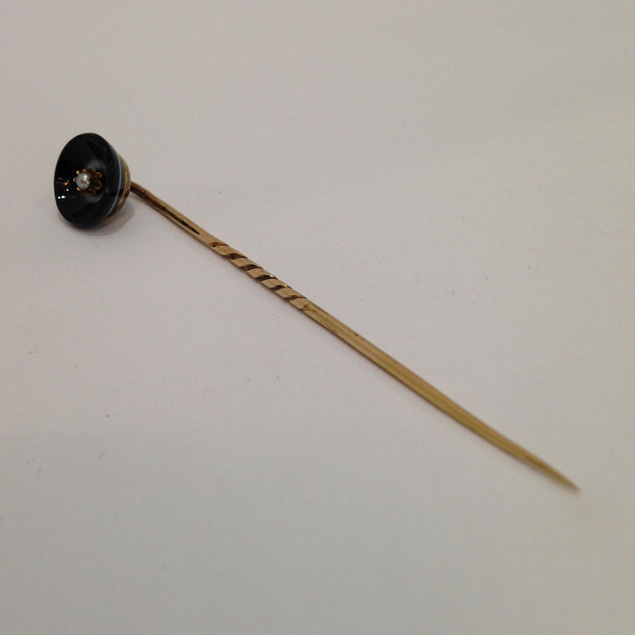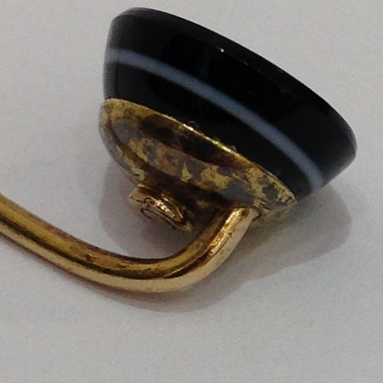 The black agate is set into a part twisted tie pin.