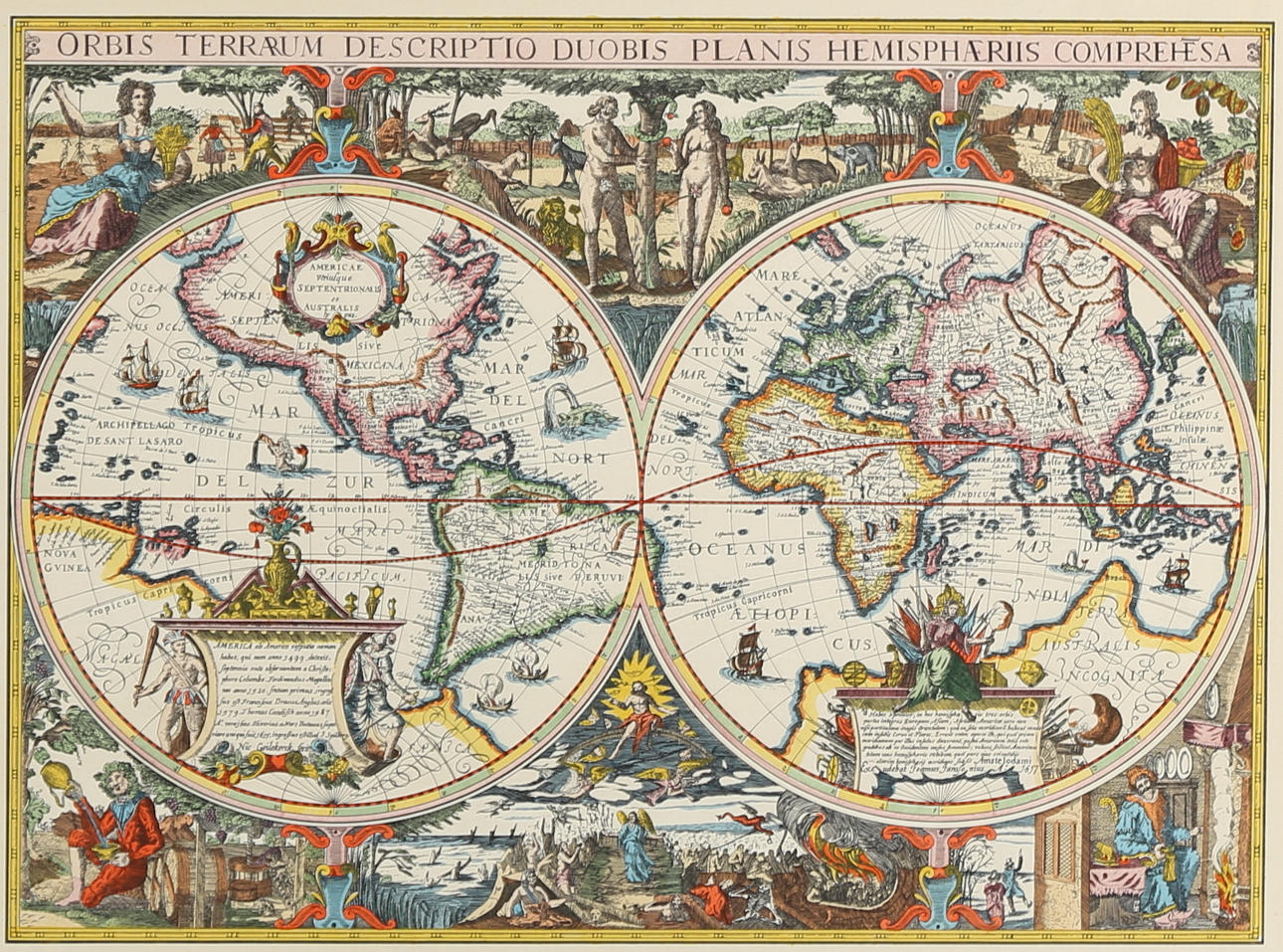 MAP, "Orbis Terrarum Descriptio Duobis Planis Hemisphaeriis Comprehesa", Nicholas Van Geelkercken, 1900s.