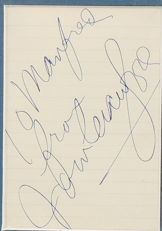 A montage consisting of a signature and a photo. The photo from the film "She danced a summer". The assembly is done in pass-partout with acid-free material.