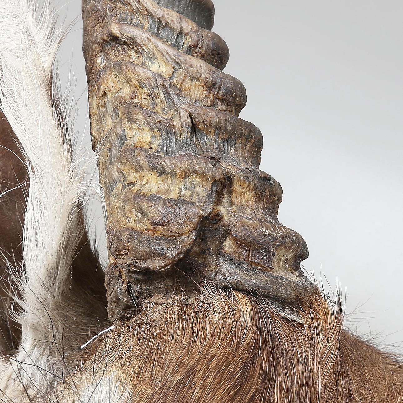 1 horn cracked at skull.