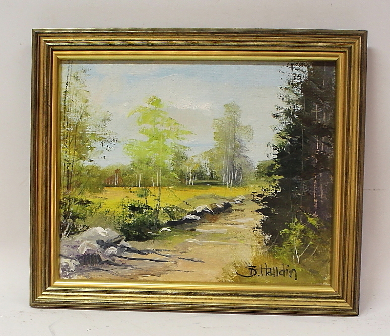 759464. BROR HALLDIN. Oil on canvas, forest view, sig.