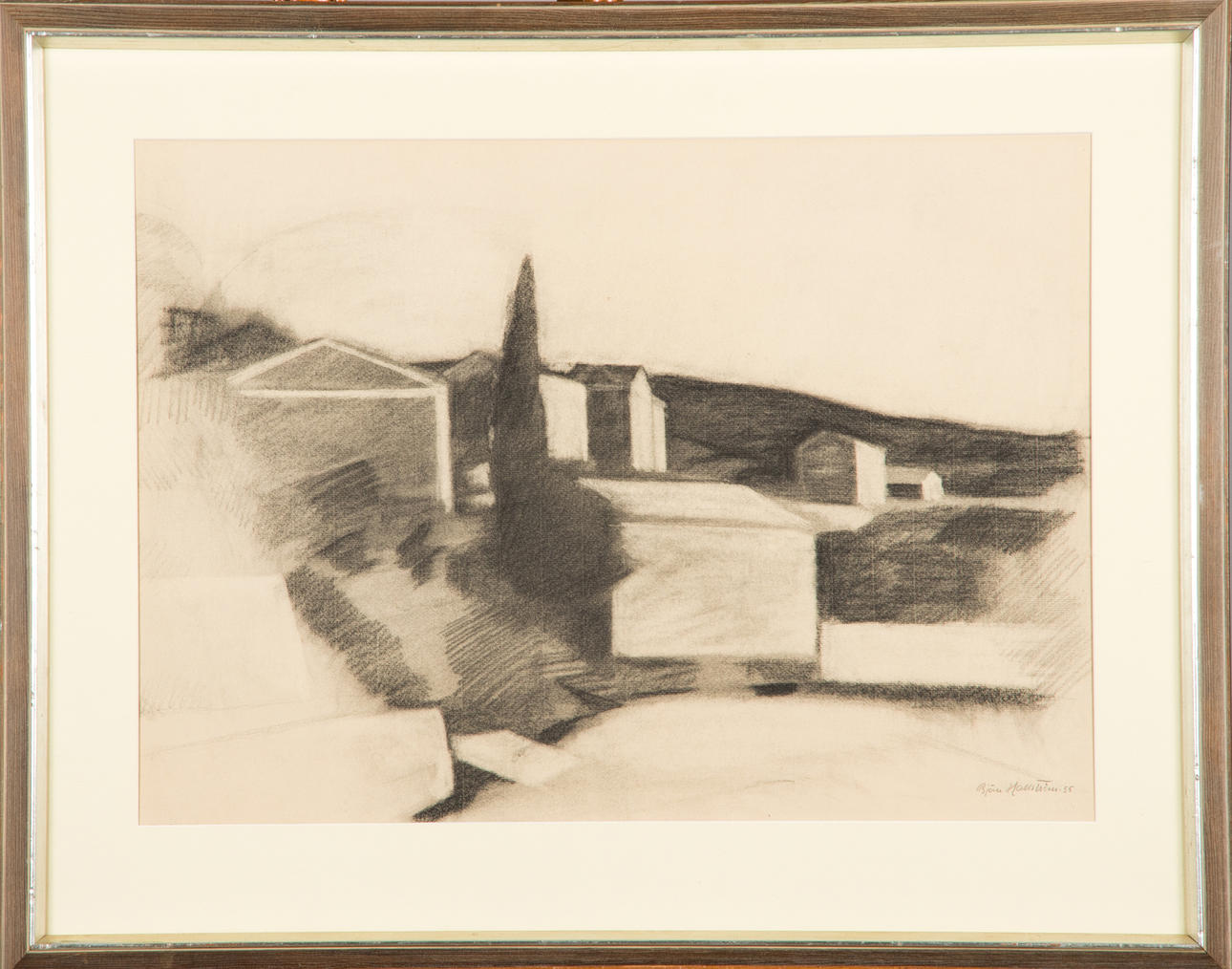 BJÖRN HALLSTRÖM. "Maurillas", carbon drawing, signed -55.