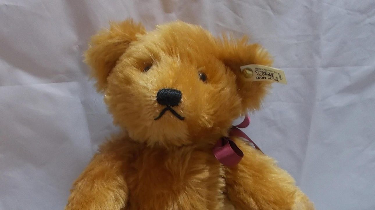 Steiff Teddy produces for Hamleys, about 32 cm long, Grumpy Bear, 1989.