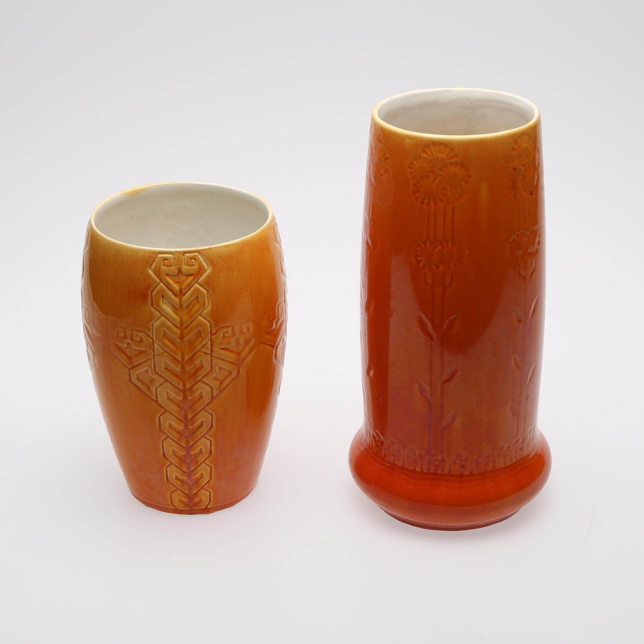 VASES, TWO PIECES, RÖRSTRAND, art nouveau, flintware with.