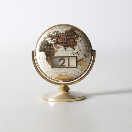 Sliek works, Majak starts but stops. Gold colored table calendar with minor wear.