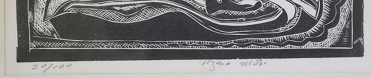 AZARIA MBATHA. Lithography "5 Men" signed & numbered 20/100.