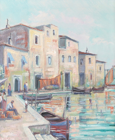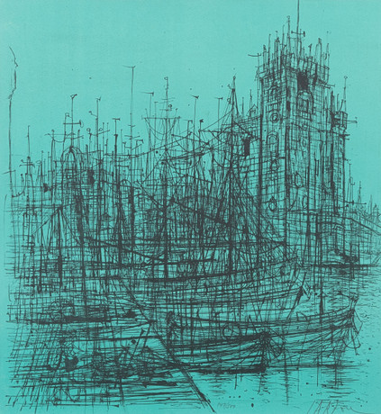 780270. ERIK OLSSON SANDA. lithograph, harbor motif, signed, dated 67 and numbered 39/100.