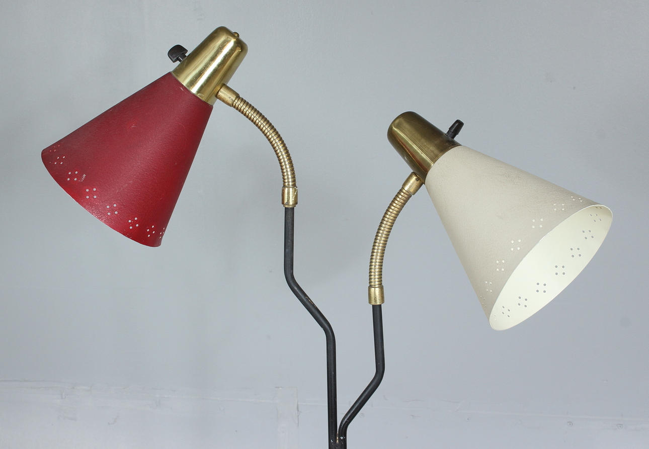 788729. FLOOR LAMP, 2 light bulbs, tin, AJH, 1950s.