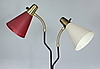 FLOOR LAMP, 2 light bulbs, tin, AJH, 1950s.