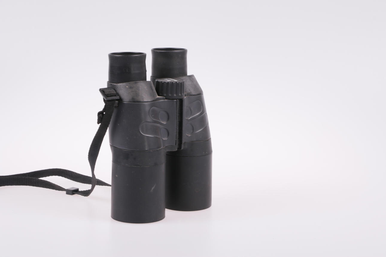 Field binoculars with rubber exterior. Lens cover and strap Length approx. 16 cm.