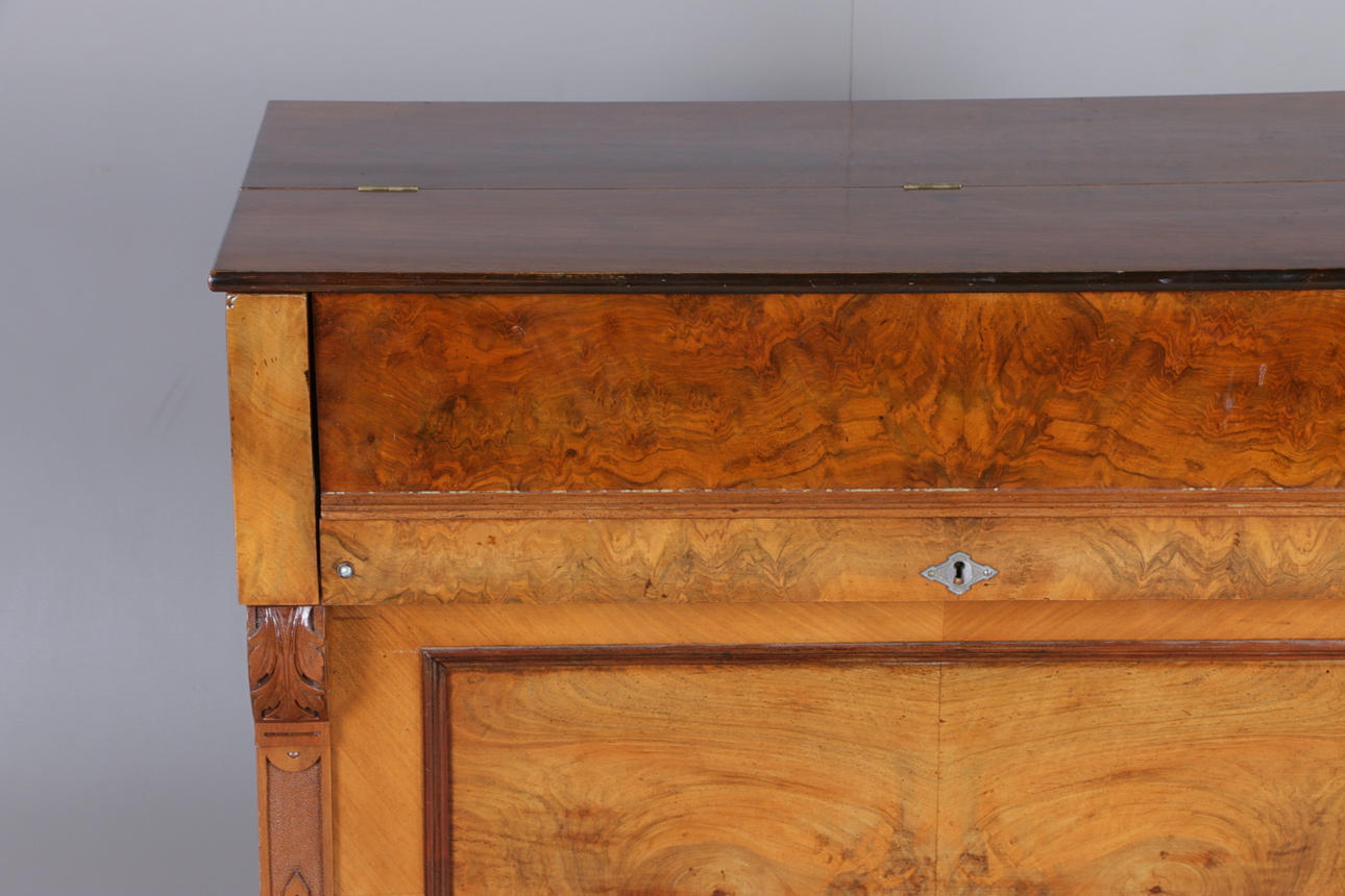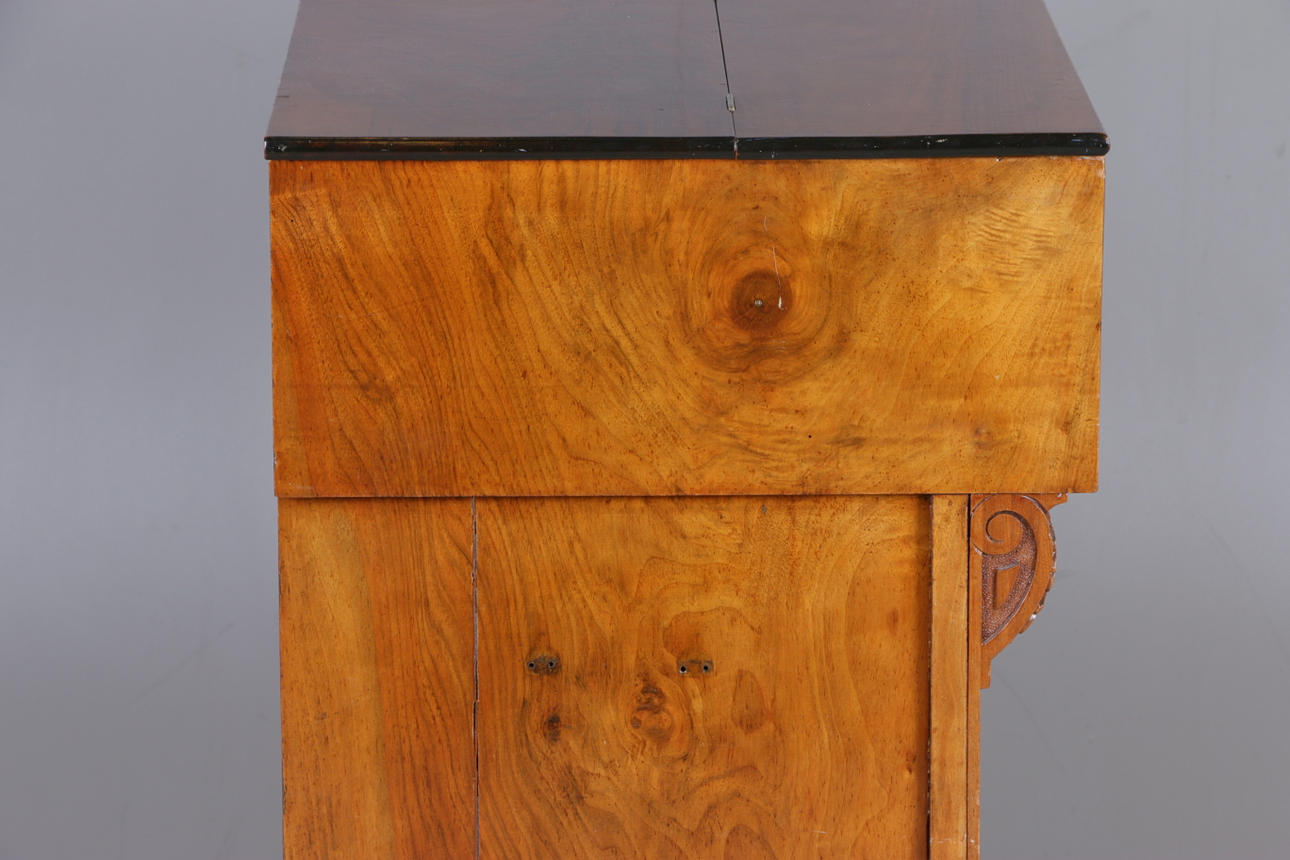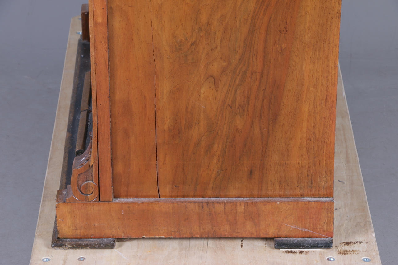 Manufacturer unidentified, the bellows get air but no sound from the keys, casing with cracks, back piece missing.