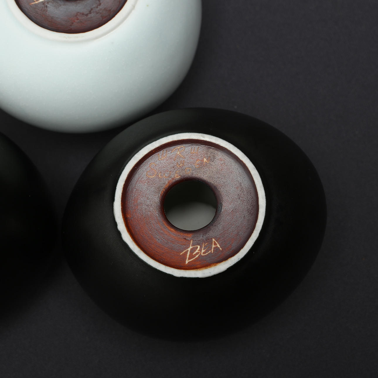 CANDLESTICKS, 3 pcs, stoneware, Beatrice Hansson, Rörstrand, 1980s.