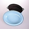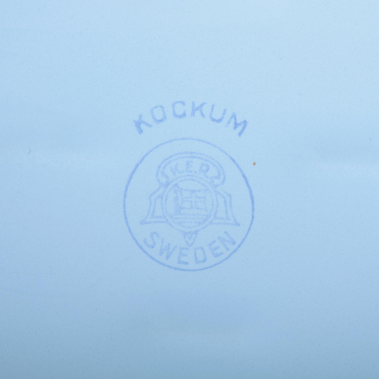 Enamel & Cast Iron Marked, "Kockum KER Sweden" on the inside of the lid and "4 LIT KOKKUMS SWEDEN" on the underside of the frying pan.