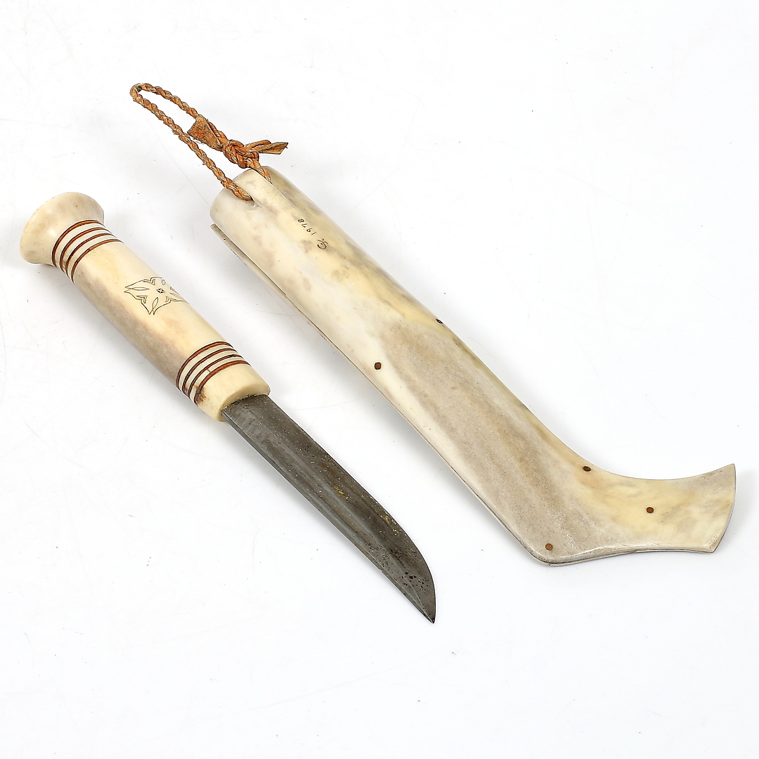 802116. GUNNAR KIVIMÄKI. Sami knife, full horn, monogram signed GK, dated 1978.