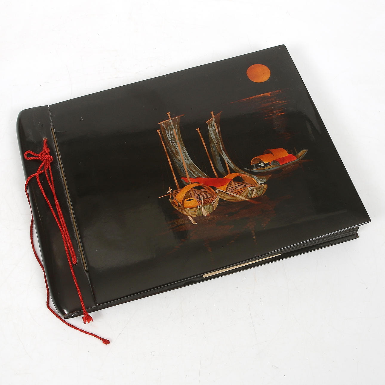 Album in lacquered wood, length 39 cm, height 30 cm.