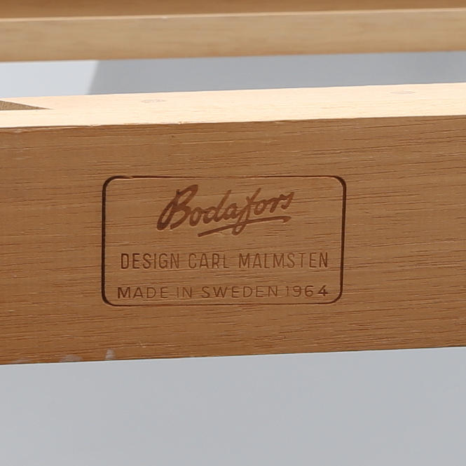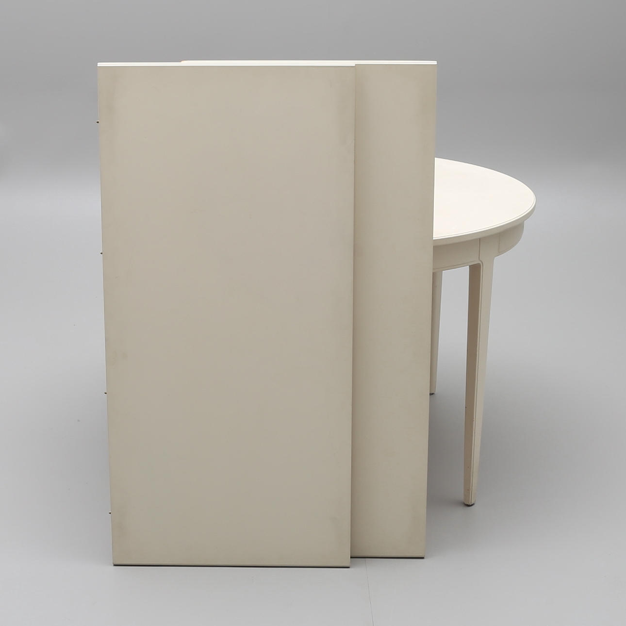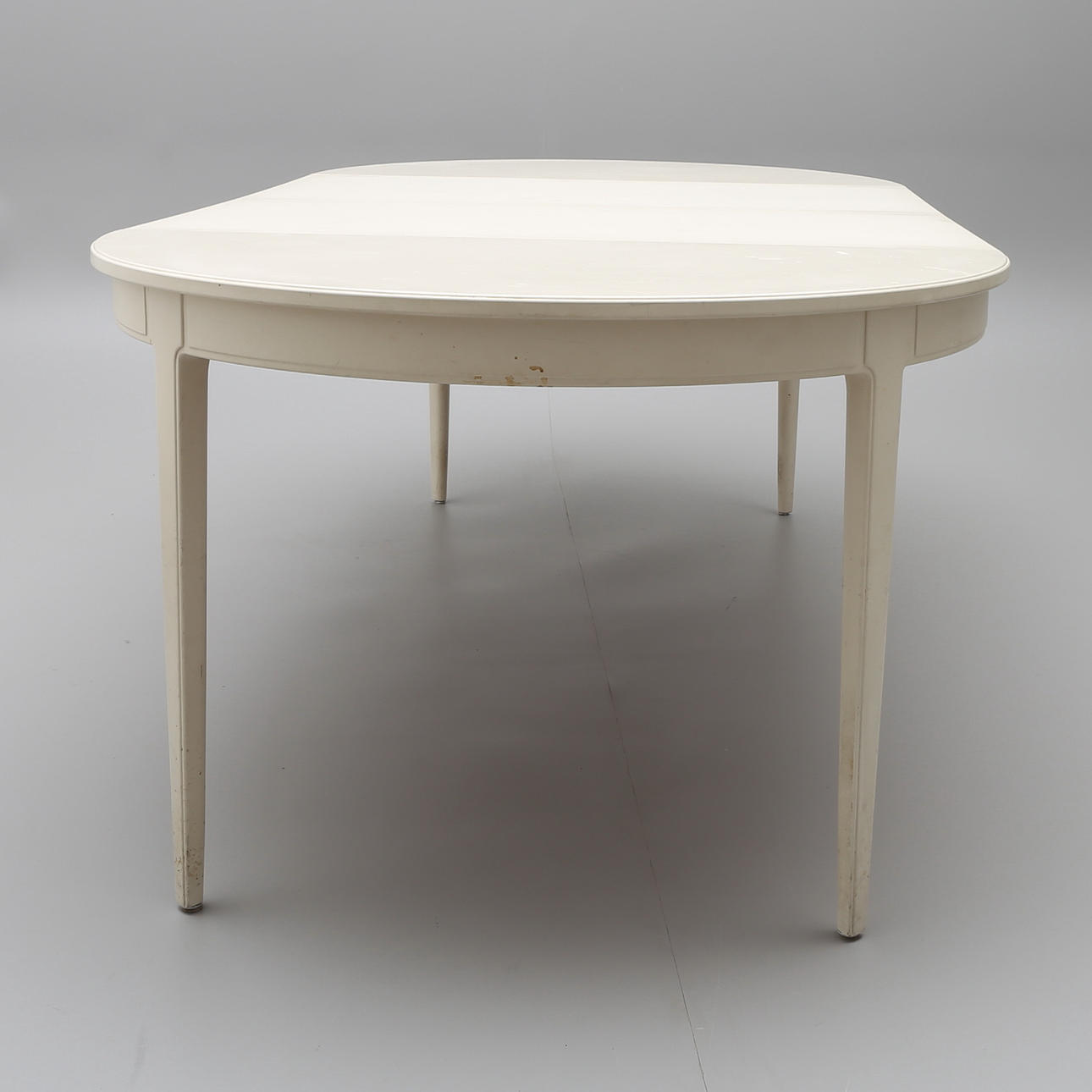 Grey-painted, marked Bodafors Design Carl Malsten Made in Sweden 1964 diameter 114, cm, height 75 cm. Comes with two insert boards without edge, length 55 cm each.