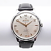 Atlantic World Masters. Steel case, champagne colored dial with gilt Arabic numerals and hands and center seconds. luminous hands. Manual work. Diameter 37 mm.