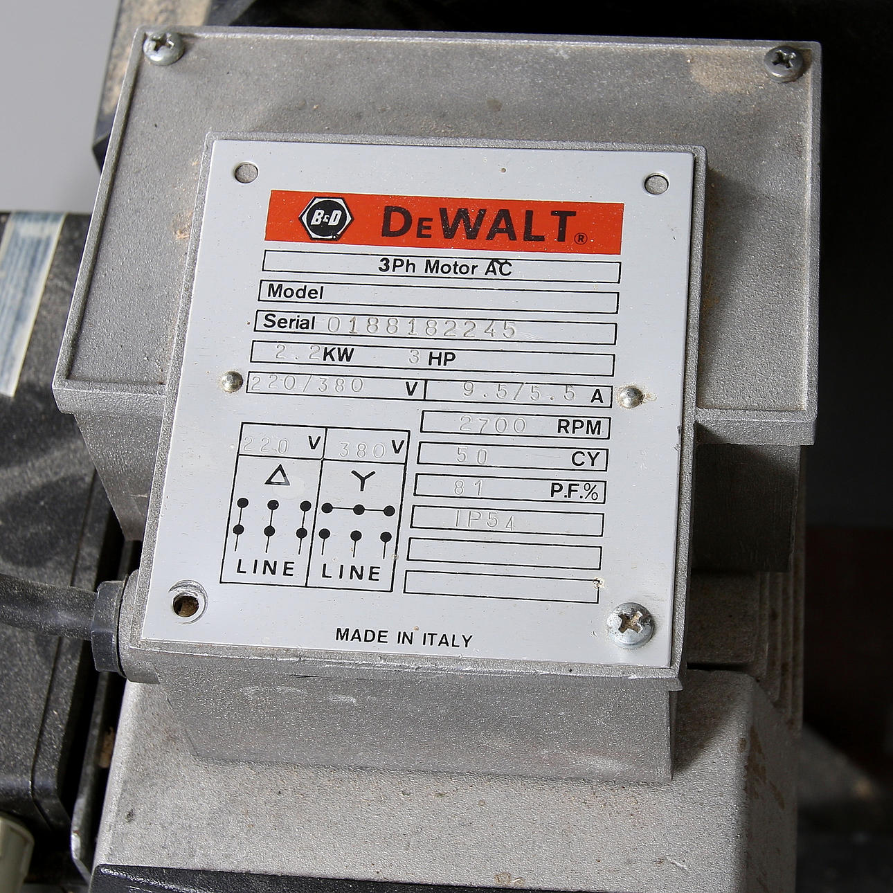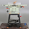 Three-phase 380V. The 2.2 Kw motor is mounted directly on the planer. Planing width 260 mm. Max planing height approx. 160 mm. 2 speeds, feeding when planing, Mounted on a stand. Length 115, width 66, height 97 cm.