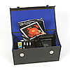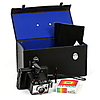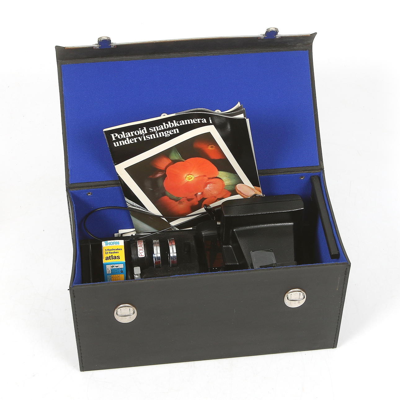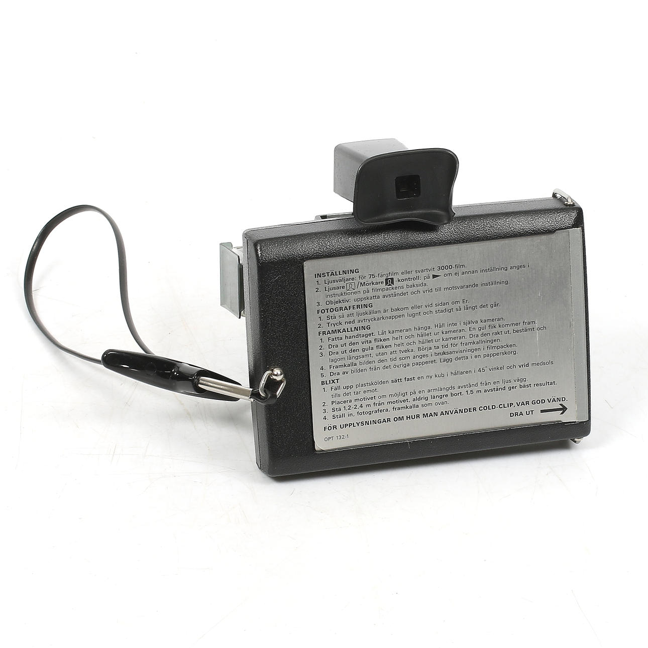 With stand, filter, film and flash. Original box included, dimensions of box length 34, width 17, height 18 cm.