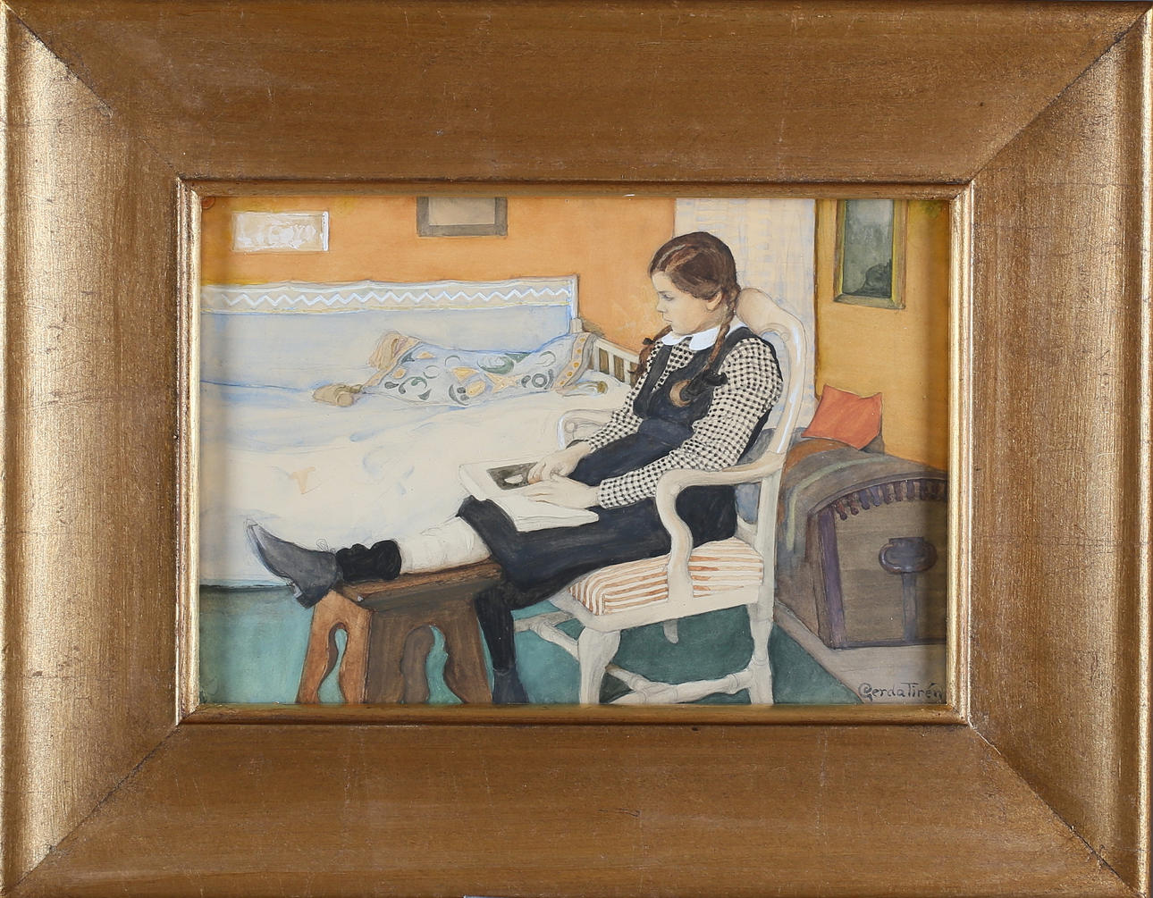 819004. GERDA TIRÉN. "The invalid", watercolour, signed.