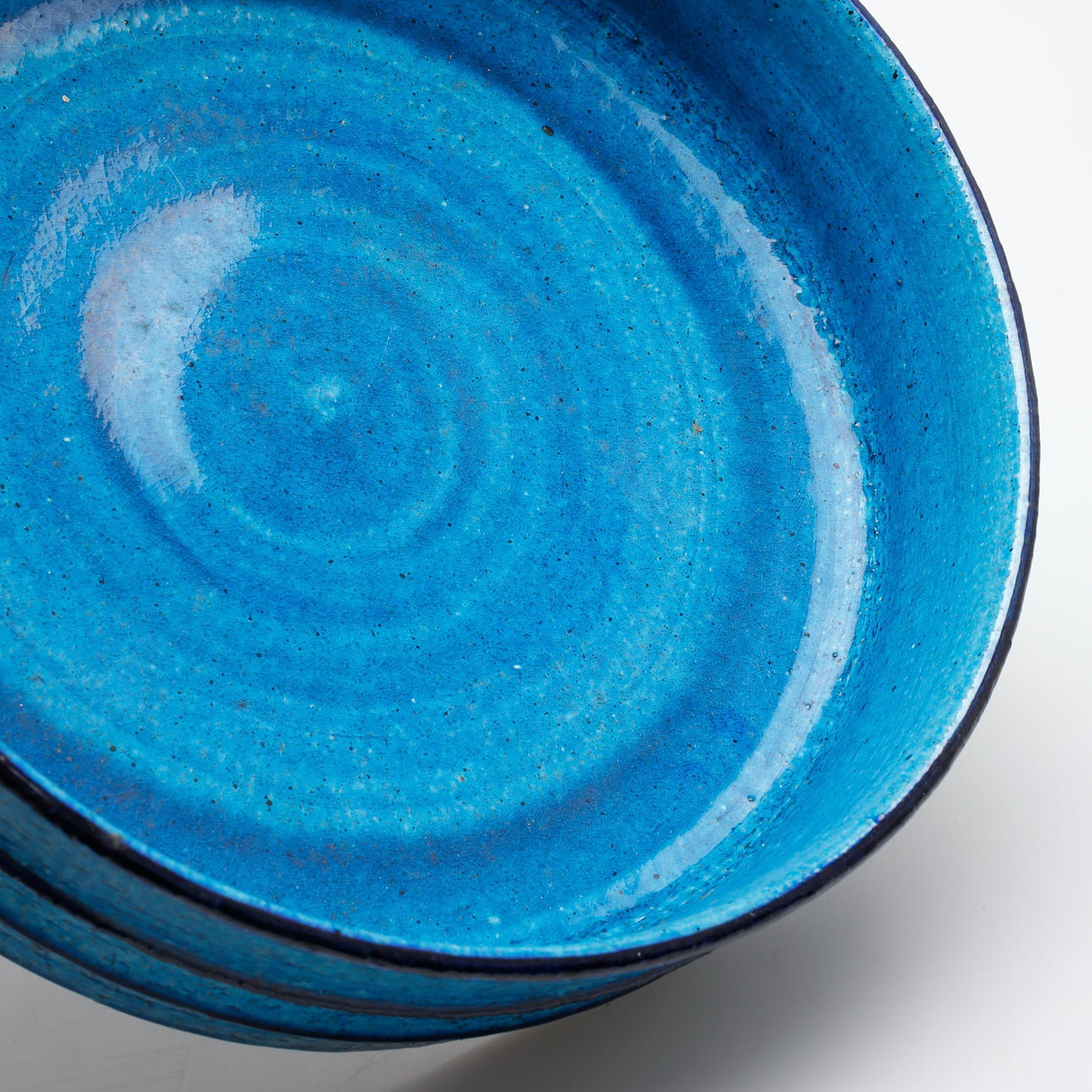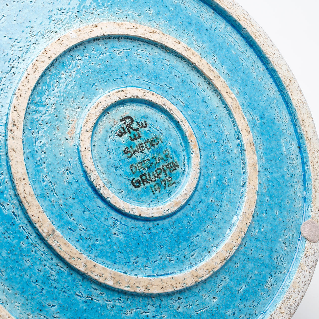 Turquoise glaze with dark blue decoration. Marked R Sweden, Drejargruppen 1972. The anonymous spinning group started in 1972.