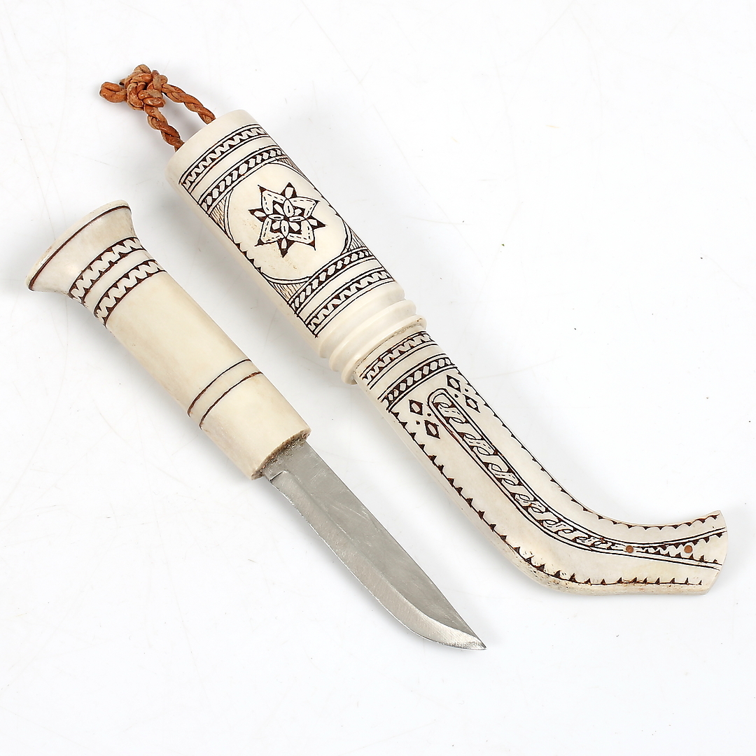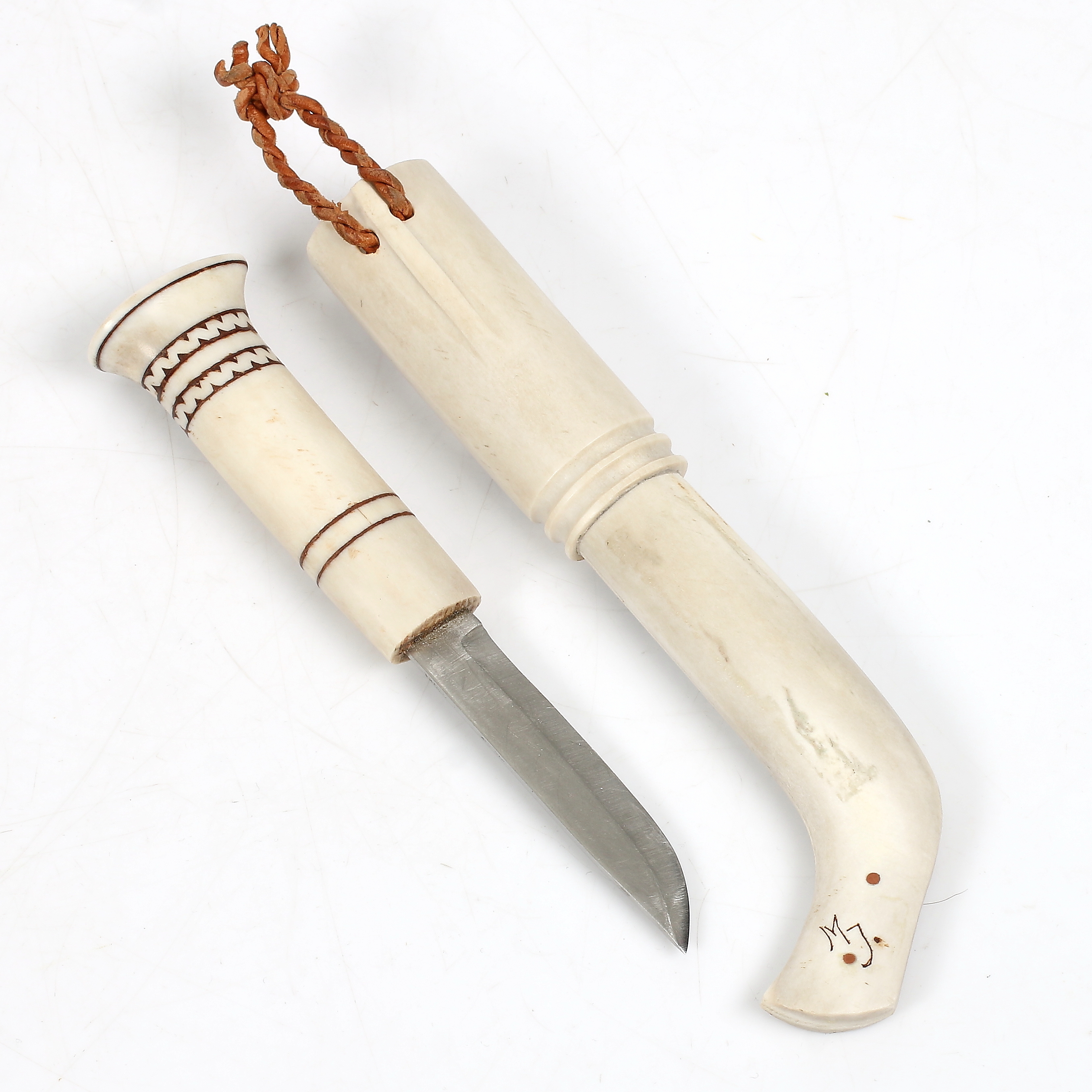 832106. MATTI JONSSON, Sami knife, full horn, monogram signed.