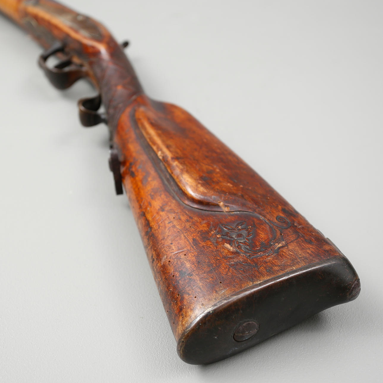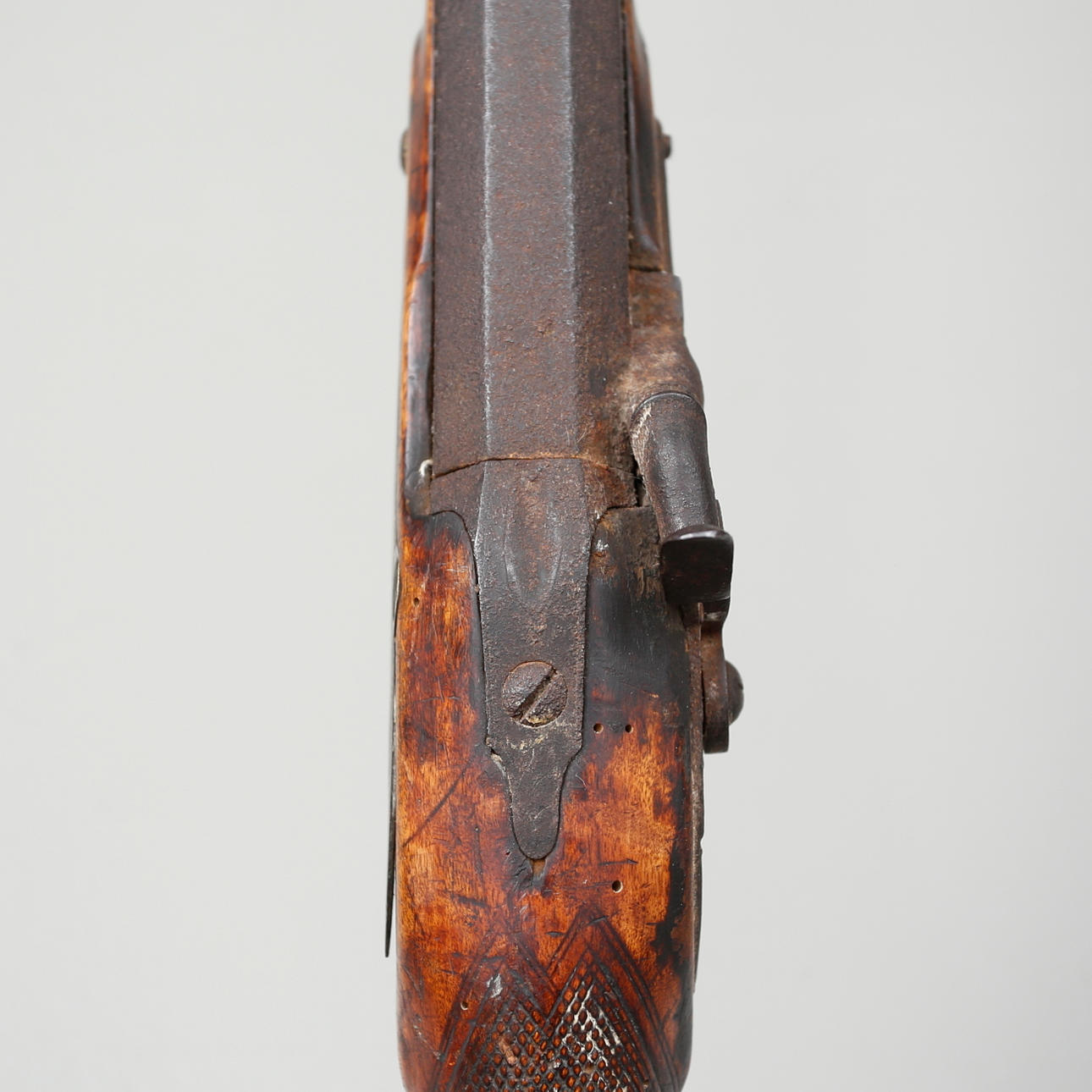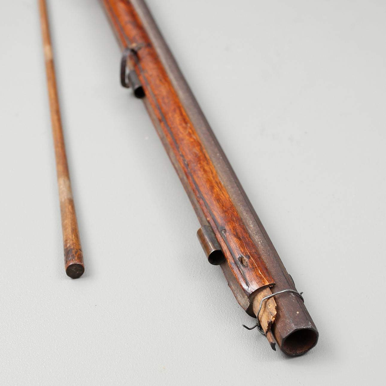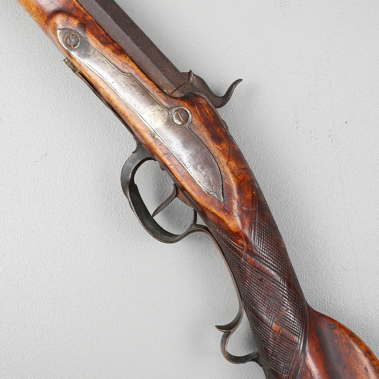 Strike-lock rifle, circa 1850s, with octagonal barrel, full birch stock, length 114 cm.