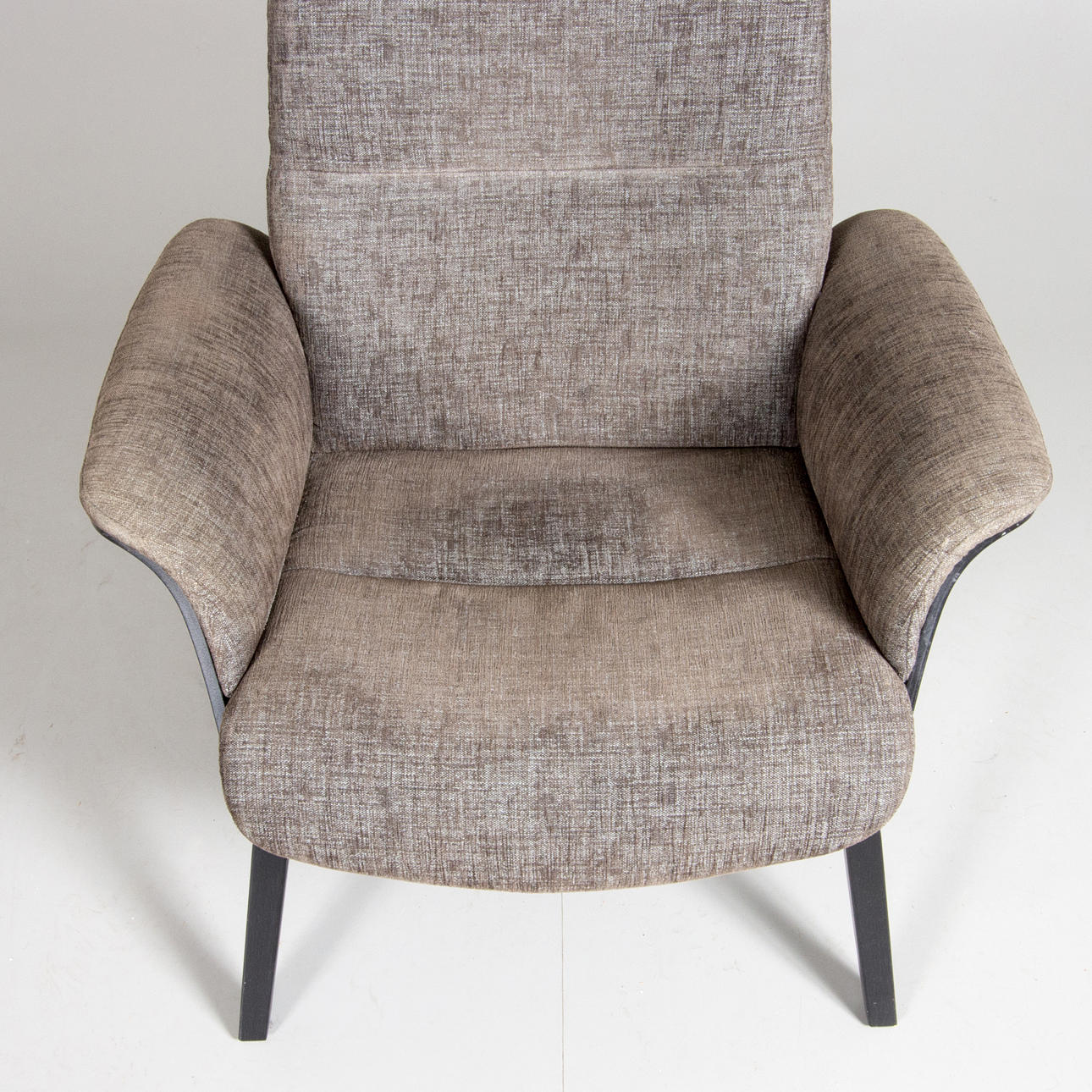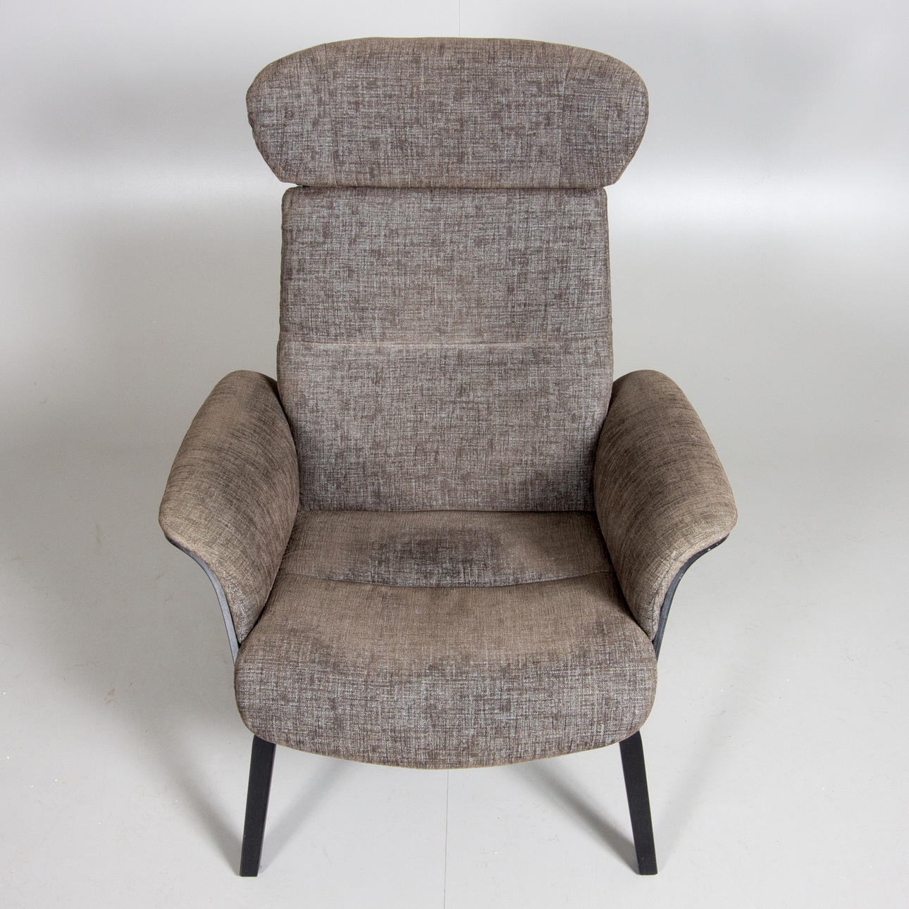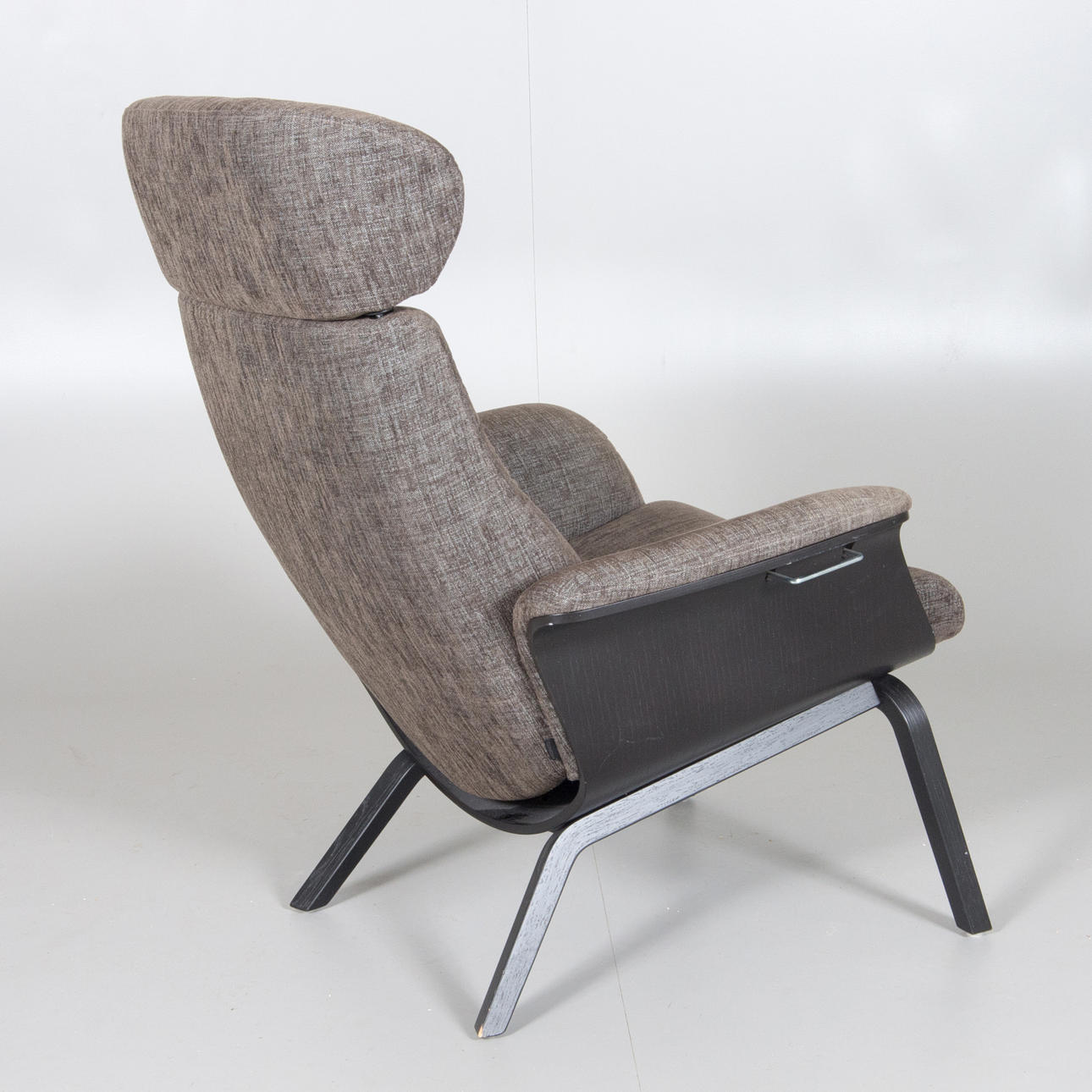 Gray upholstery with black painted undercarriage. Adjustable back.
