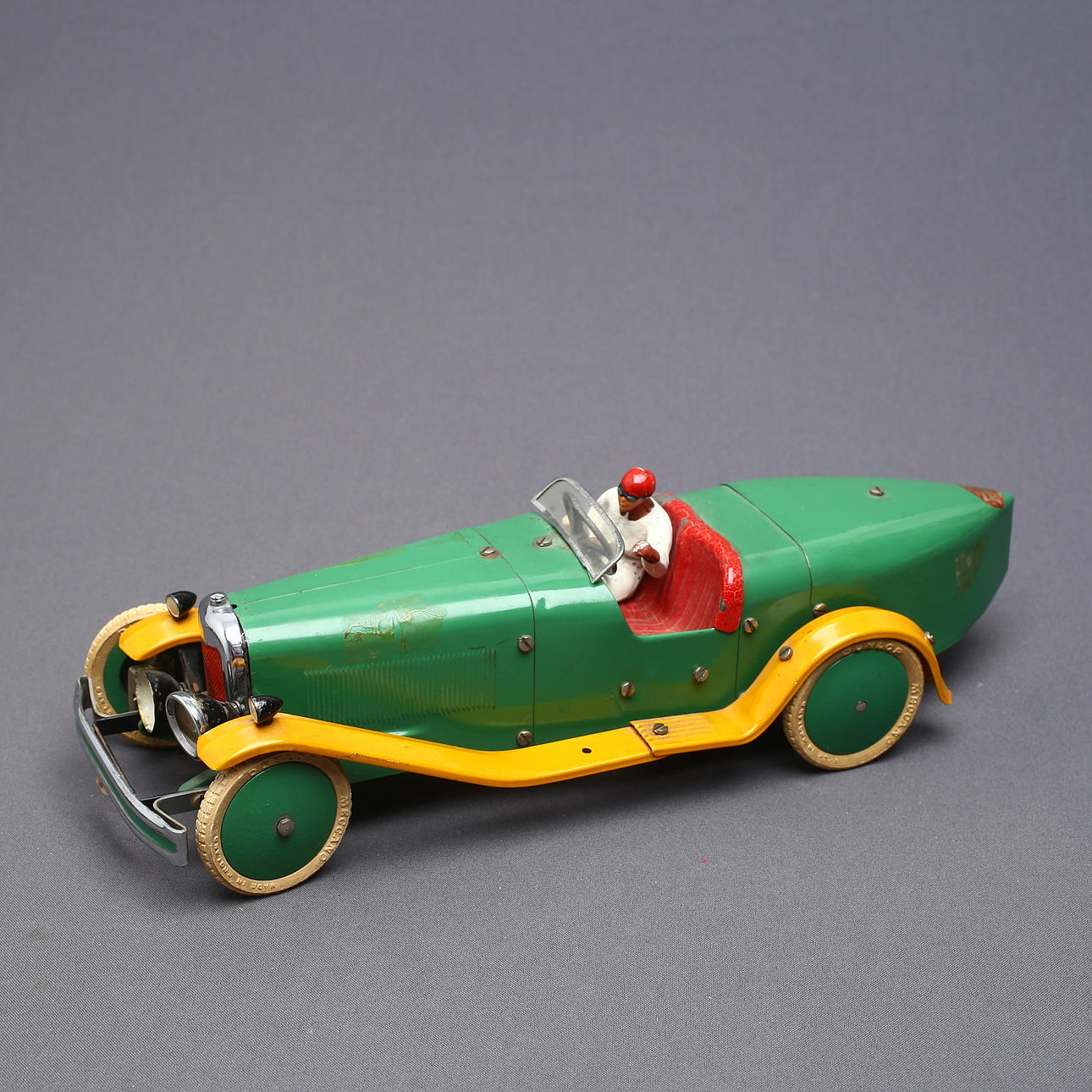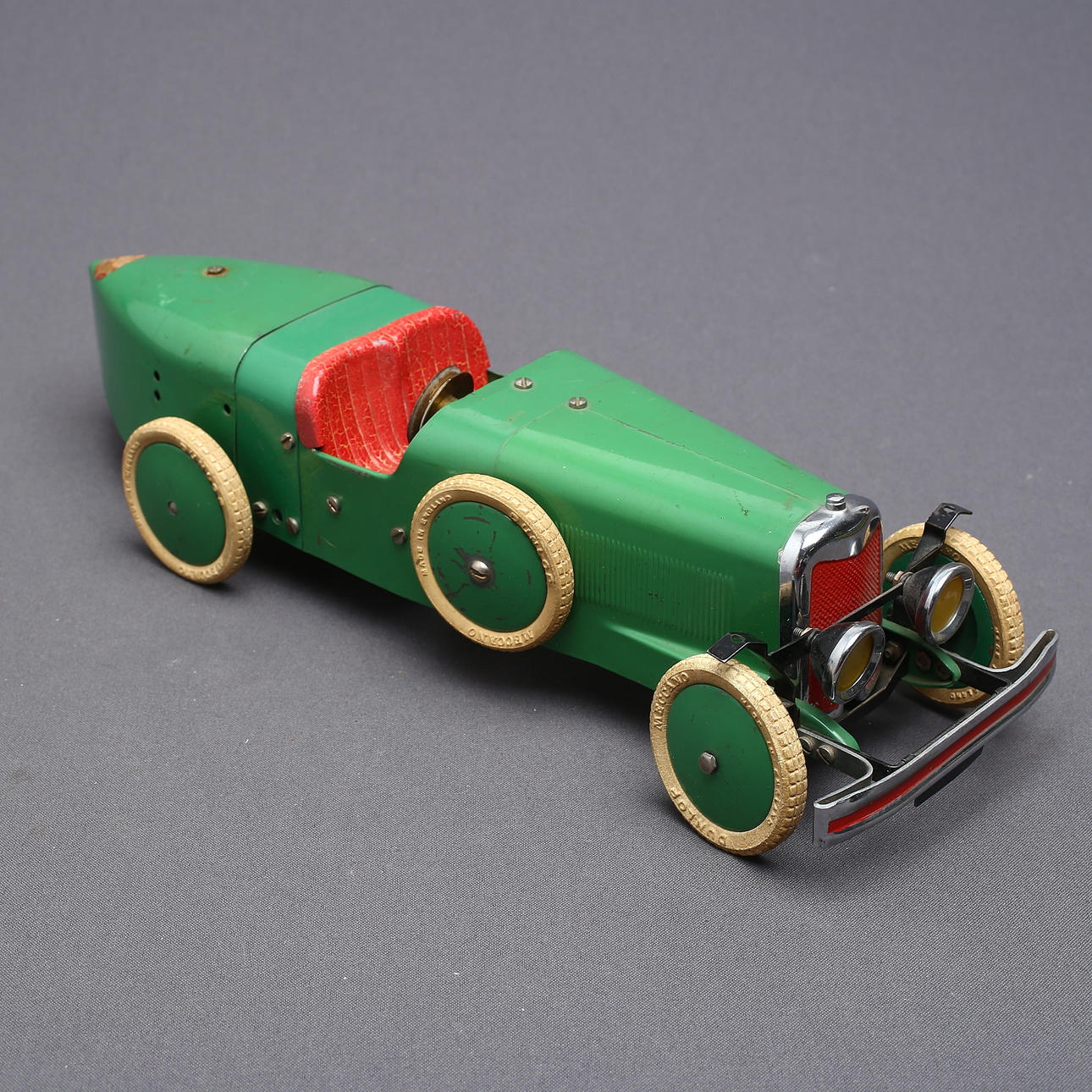 MECCANO 2 cars large version, green / yellow, clockwork.
