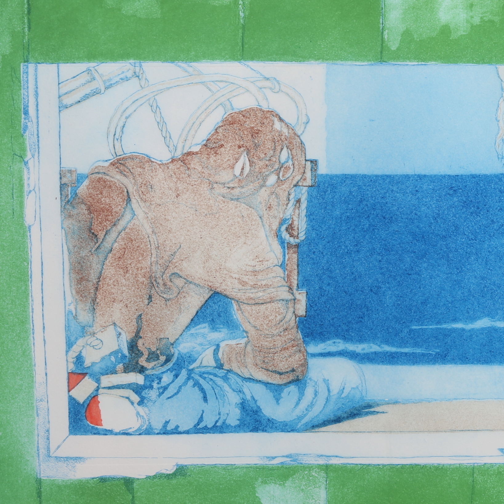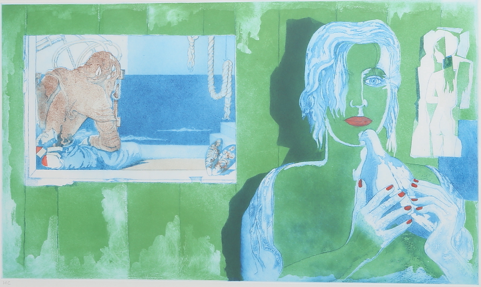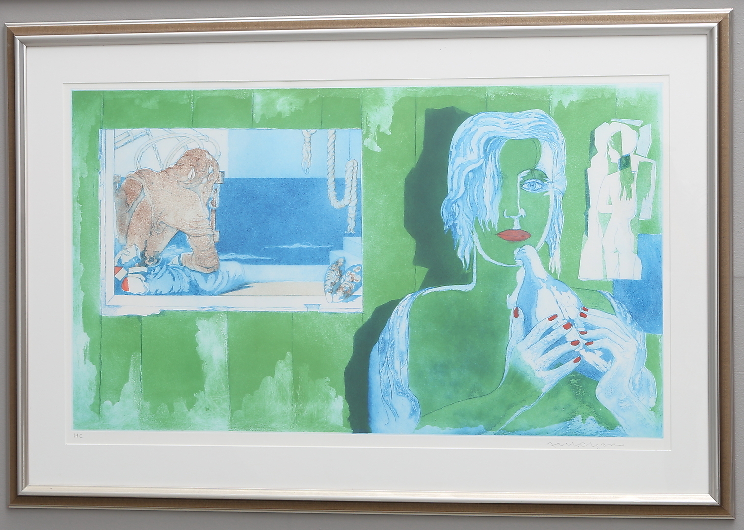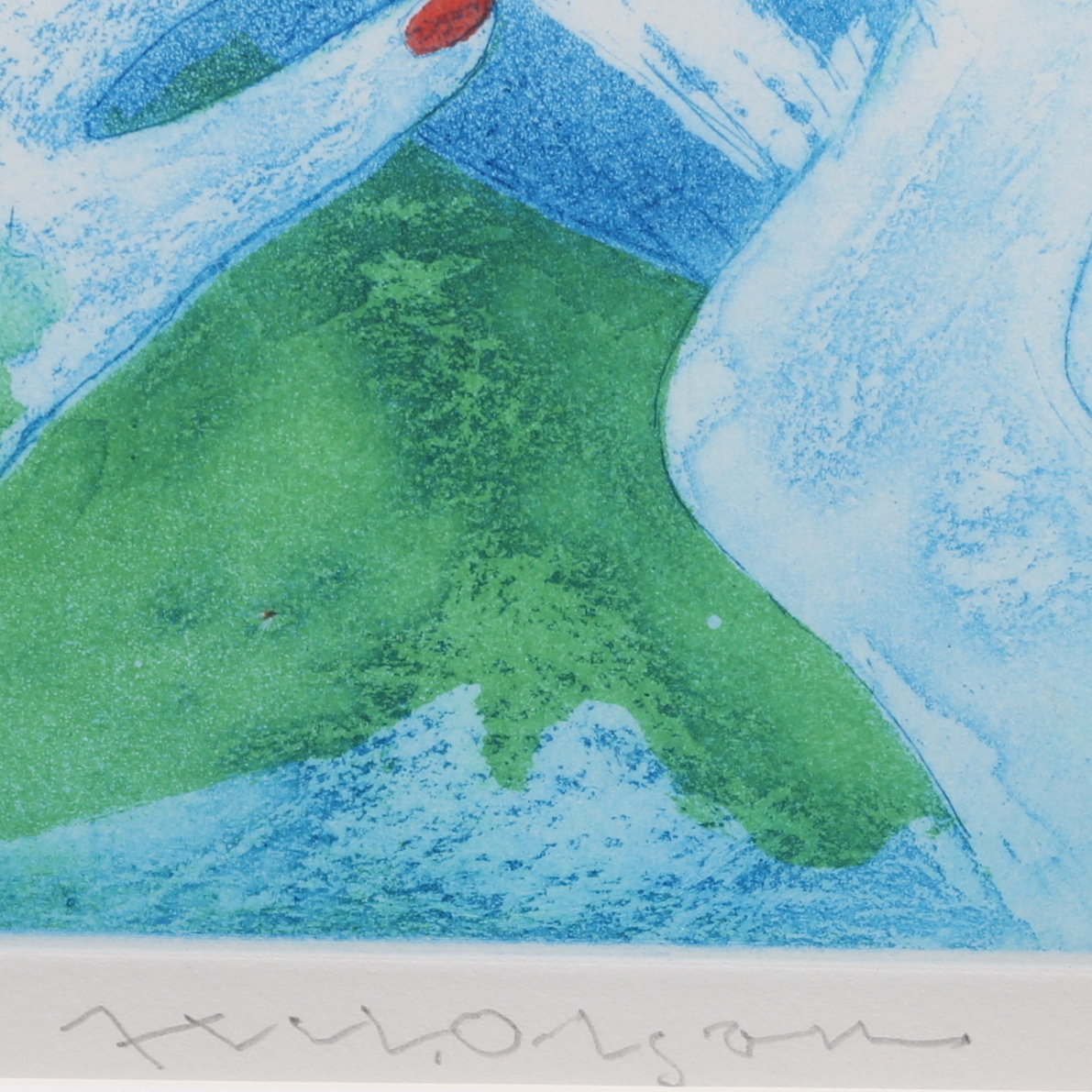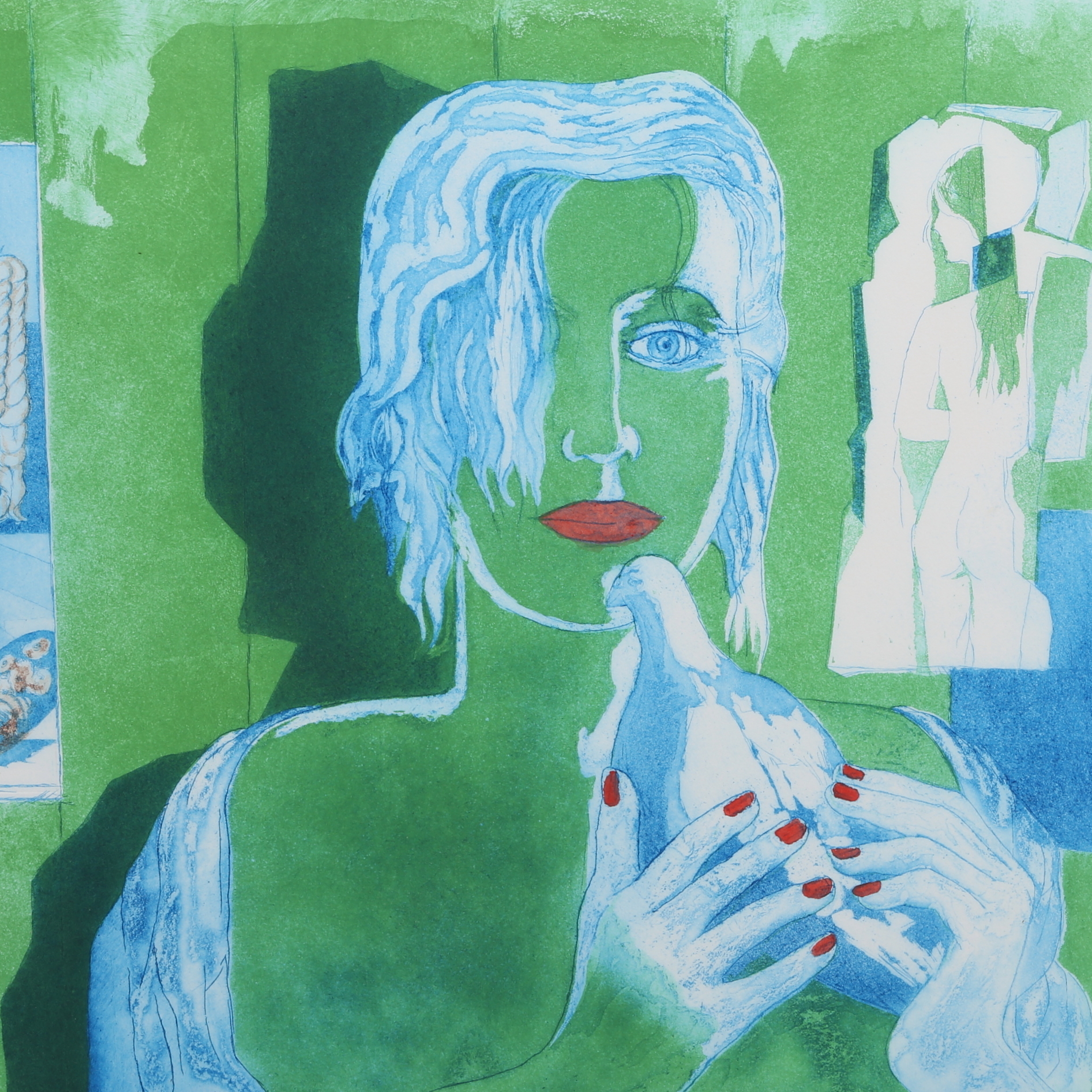 853646. AXEL OLSON. Color etching, girl with dove, signed, numbered HC. 58x99.