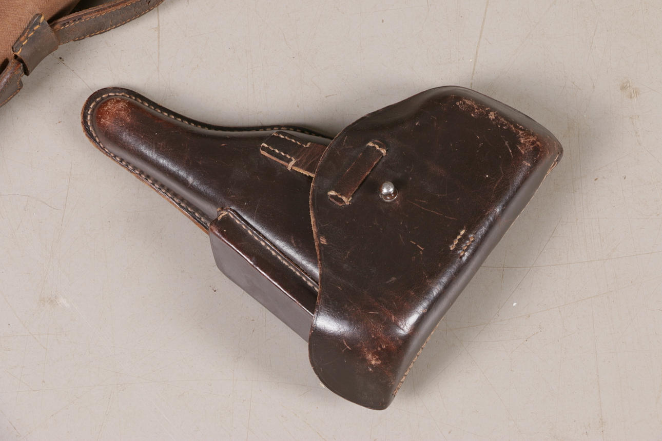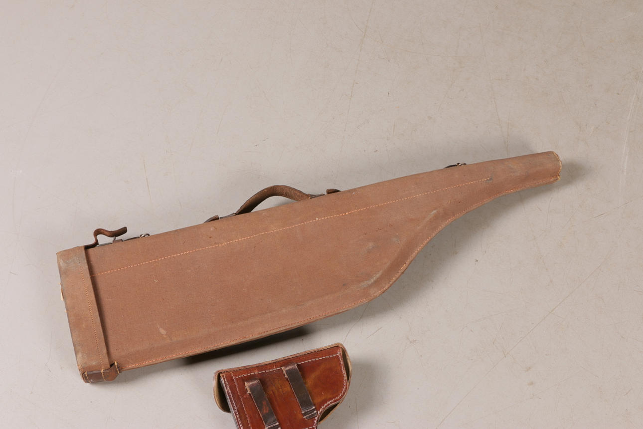 Case for rifle, two-part in canvas and cardboard, with handle. Length approx: 79.5 cm.